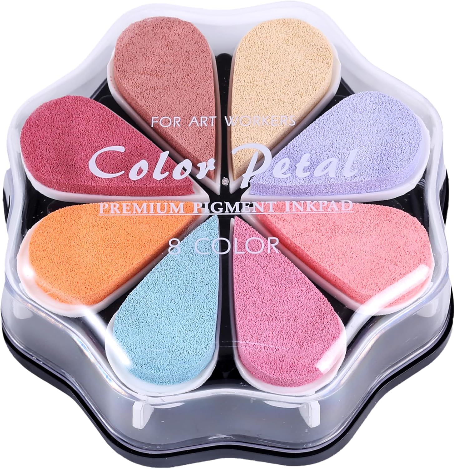 - Each case has 8 waterdrop shaped ink pads with different colors.