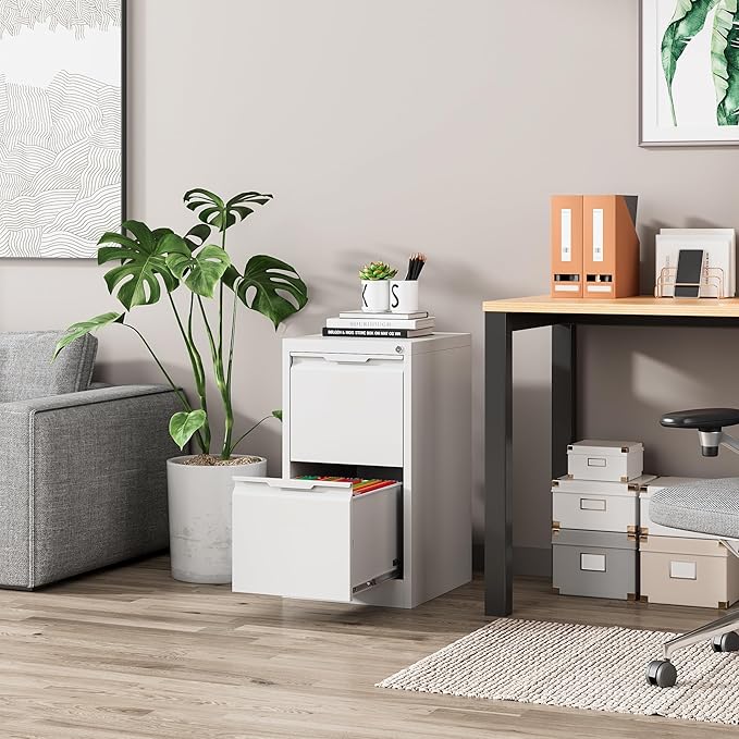 - 【Sturdy and Durable】Metal file cabinet drawers crafted from steel material, designed to be durable and suitable for all your storage needs. With a powder coating process that bonds and bakes the protective coating to the bare metal, the 2 drawer file cabinet with lock forms an effective barrier against corrosion.