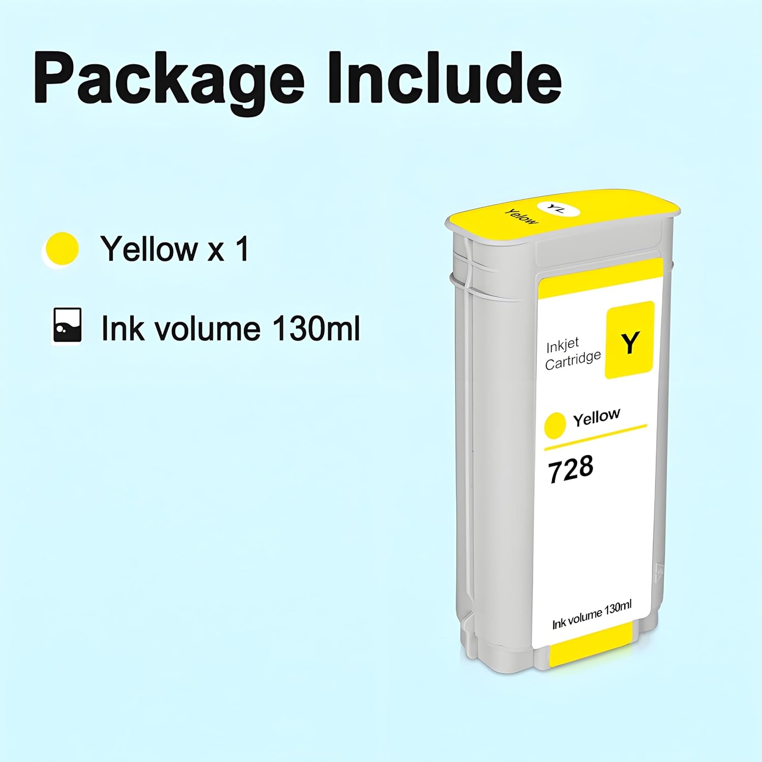 - Package Contents: 1 x yellow 130ml Dye ink HPQ728 ink cartridge with newest chip