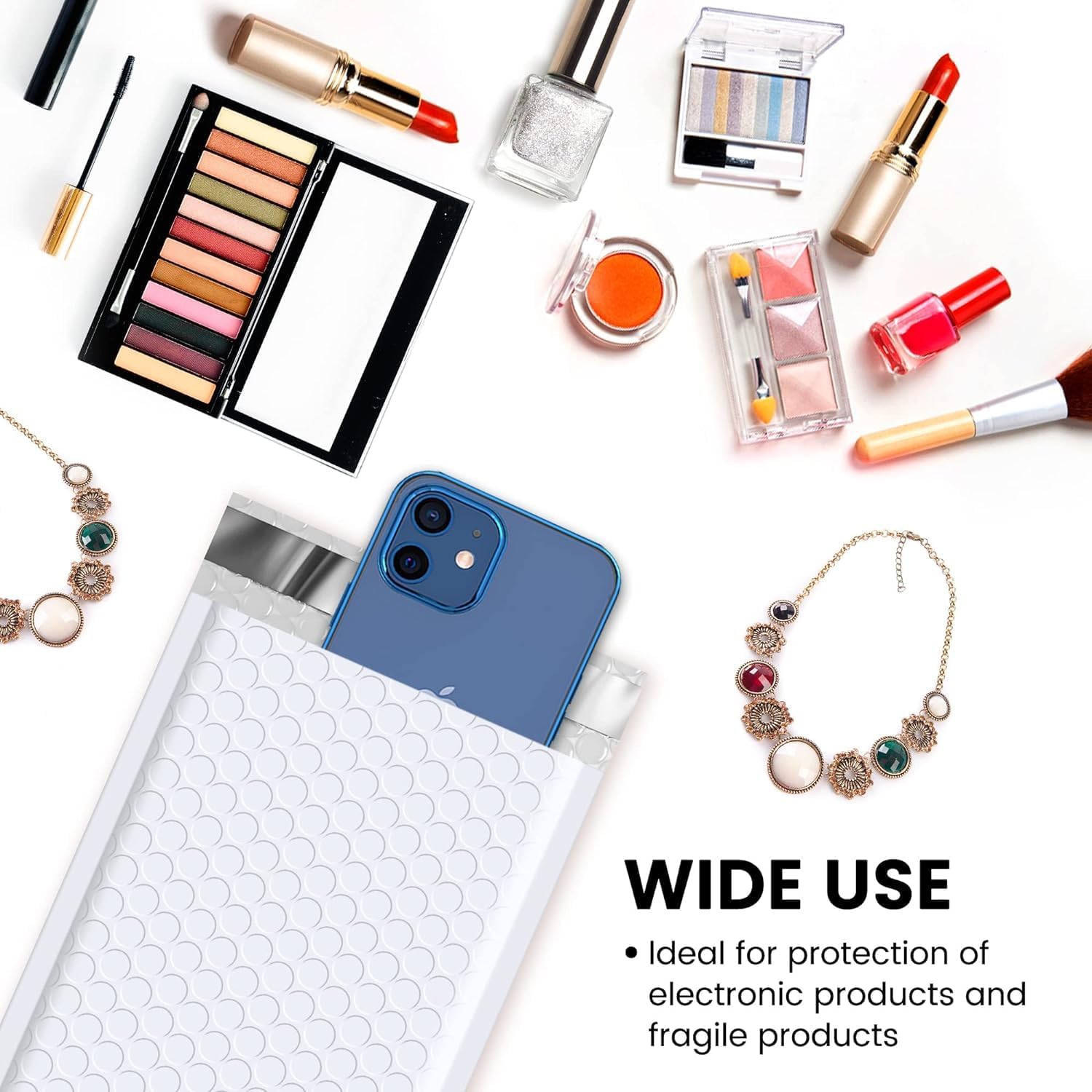 - Perfect Size White Bubble Mailers: The small bubble mailers outer size is 4x8 inch, while the inner size is 4x7 inch. It is very suitable to transport for jewelry, makeup, cards, phone case, lips, photosοΌhandcraft and more.