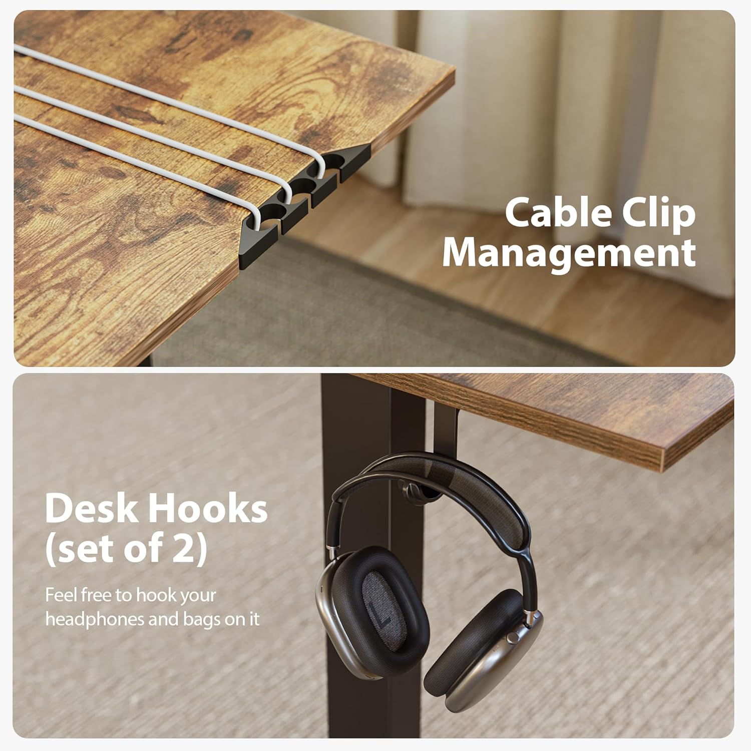 - γ63" Ample Workspaceγ63*55" L-shaped adjustable height desk is perfect for home office and gaming by providing large space. Extra-large space easily holds 3 desktop PCs, 1 laptop, and other office accessories.