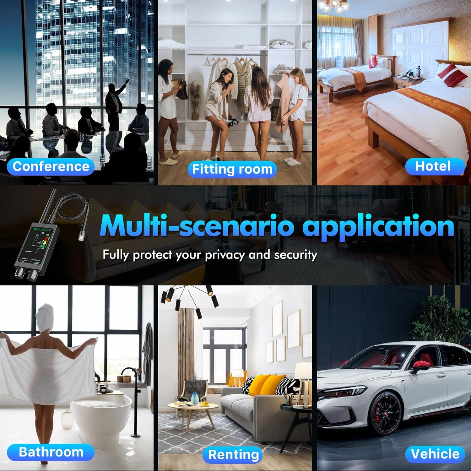 - Professional Hidden Camera & Bug Detection: Equipped with advanced bug sweeping technology, this device quickly and accurately detects hidden cameras, listening devices, and other surveillance tools. Its durable aluminum casing ensures stable performance, making it an essential tool for personal and professional security.