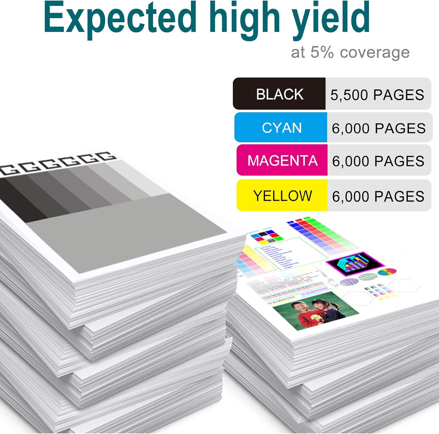 - High Page Yield: 5,500 pages black toner cartridge and 6,000 Pages color toner cartridge at 5% coverage (Letter/A4)