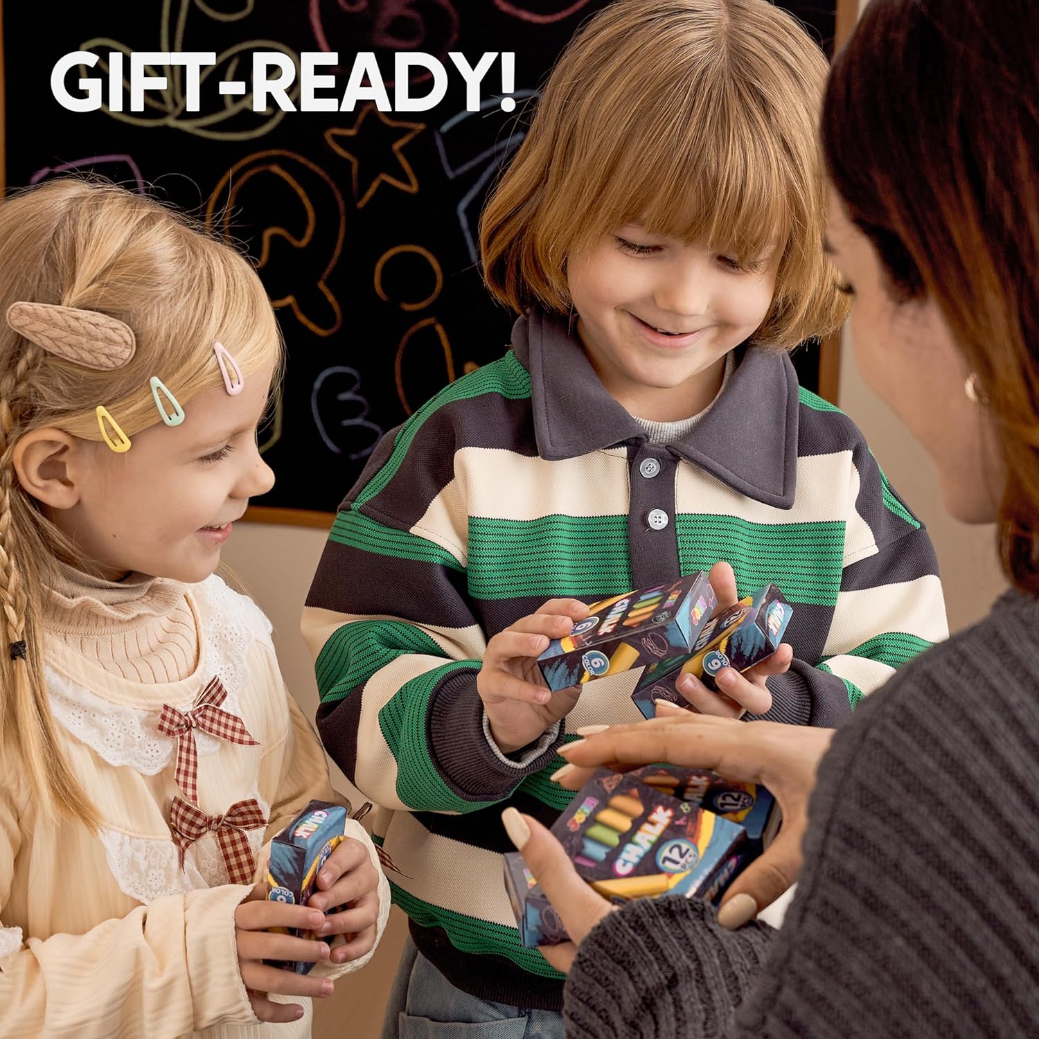 - 432 counts Colorful chalk : 36 BOXES and each box of small chalks comes in 6 bright colors - red, blue, purple, orange, yellow, green, making your creations more colorful!