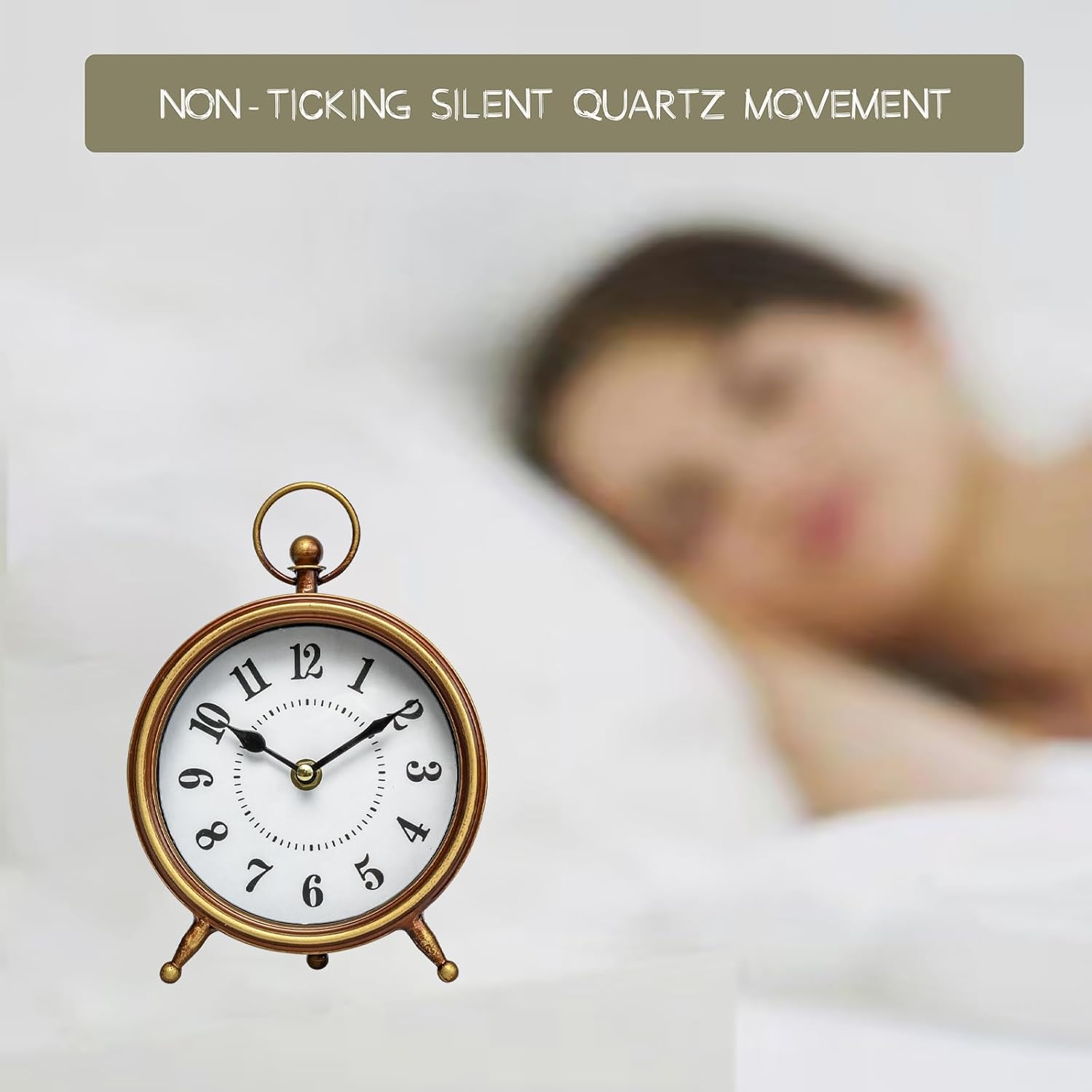 Small Gold Table and Shelf Desk Clock,Vintage Small Table Clock on Stand, Decorative Desk and Shelf Clock Farmhouse Mantel Non-Ticking Clock Rustic Metal Frame with Antique Gold Finish