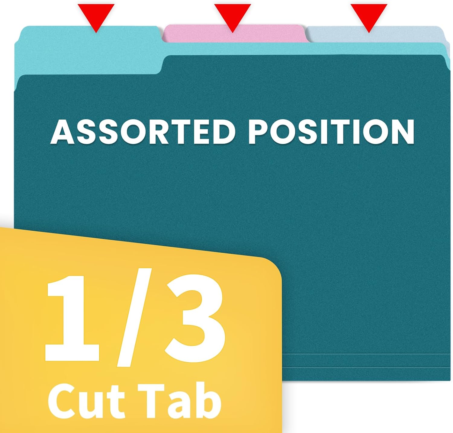- 1/3 Cut Tab: Navigate through your files seamlessly with the 1/3 cut tab feature. This thoughtful design allows easy labeling, making it simple to categorize and retrieve documents efficiently. Stay organized and in control with these user-friendly folders.