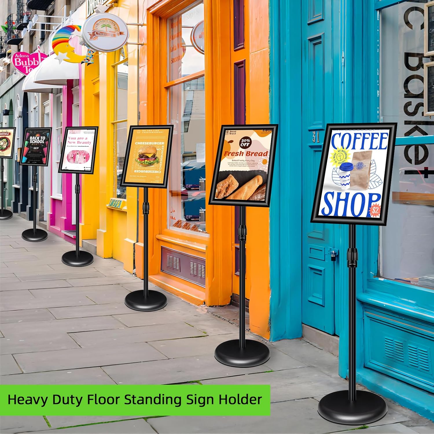 - PERFECT POSTER STAND: Our poster stands are very popular throughout the commercial promotion business. It has installation instructions, it is very suitable for shops, hotels, restaurants, offices, weddings, schools, hospitals, trade shows and other places. used for advertising, posters,information notifications, etc.indoor and outdoor are applicable.