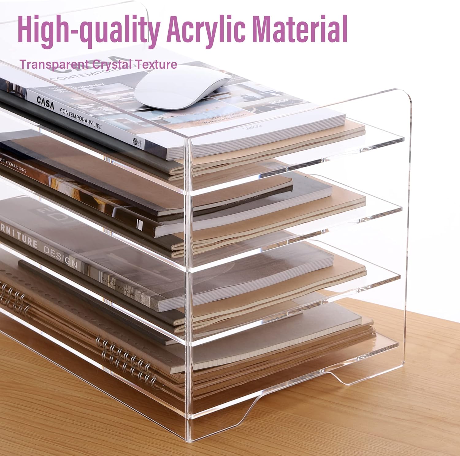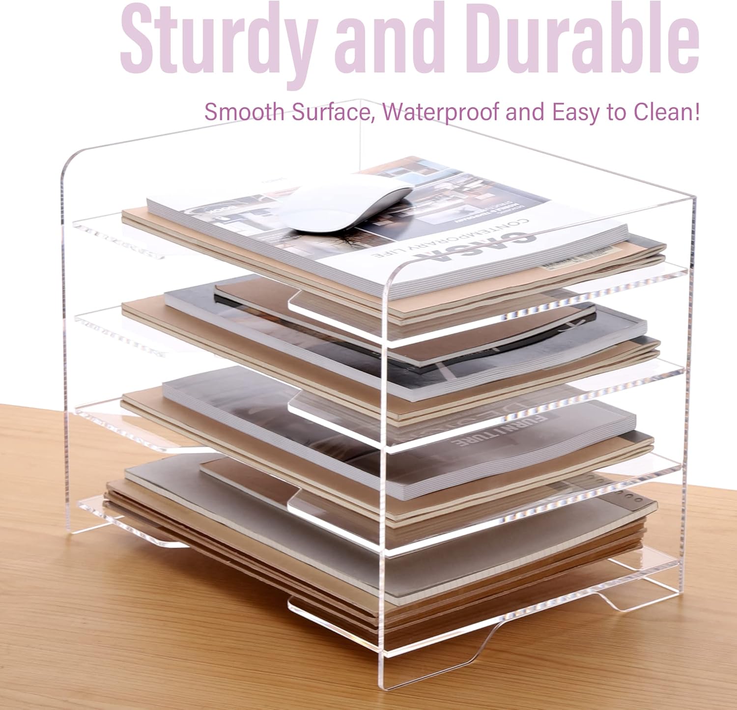 - 【Sturdy and Durable】: Made of high-quality PMMA organic material, our file organizer is hand-polished with rounded corners and a non-slip base to ensure it stays in place on your desk. It's a reliable office document organizer that improves the quality of your workspace.