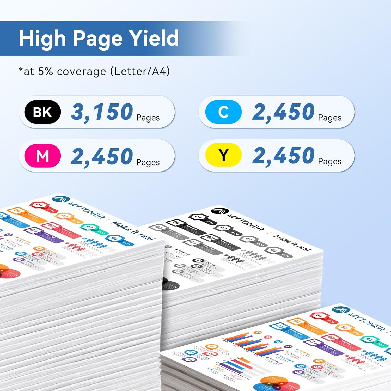 - High Page Yield: The high-yield 206X toner cartridge has a page yield of approximately 3,150 pages for black and 2,450 pages for each color (Letter/A4, at 5% coverage), which means it can print more pages than standard cartridges and it can be more cost-effective in the long run if you print frequently