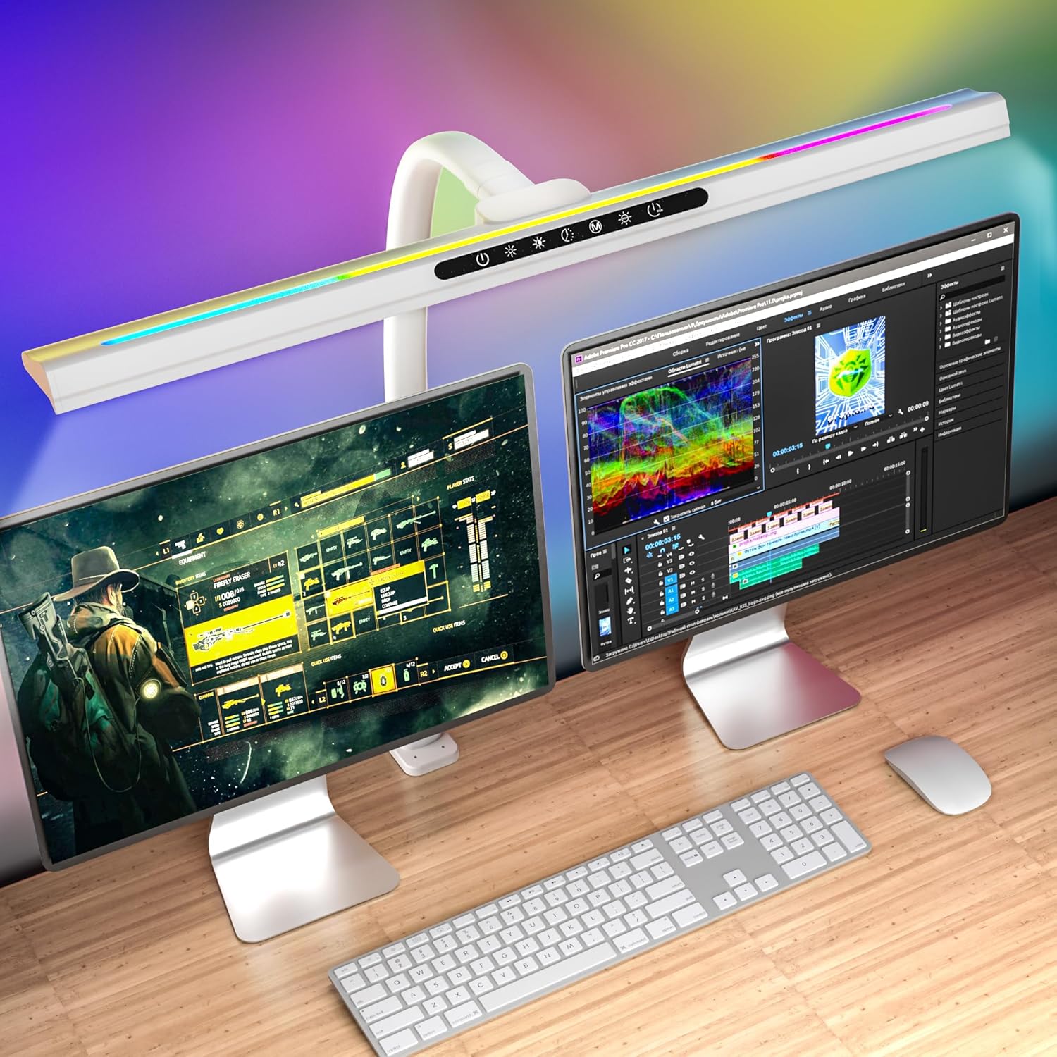 - 【45°Angled Away Asymmetric Light】The asymmetrical optical design creates the perfect beam angle to prevent screen glare,illuminating only the desktop and keyboard to minimize eyestrain and visual distractions.Enhancing your work, gaming, or leisure experience with our distinctive design that effectively combats blue light and screen glare.