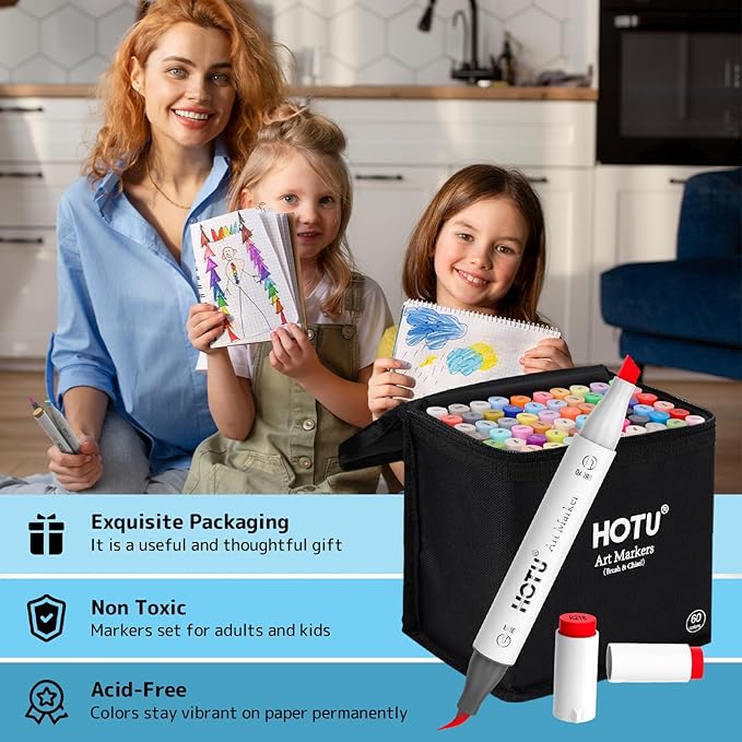 - 🎨SEAMLESS COLOR BLENDING - Alcohol markers with HOTU's high-quality ink, uniform ink flow ensures seamless color blending, eliminating grains and stripes. Markers boasting a massive 3.8G ink capacity for extended use, the alcohol-based ink dries quickly, paired with an anti-bleeding pad to ensure a clean and perfect finish.