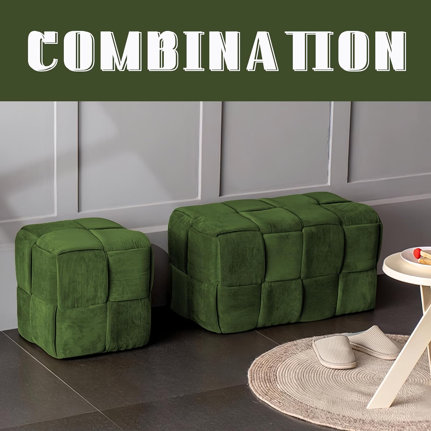 - Unique Appearance: The cross-weaving technique makes the Ottoman look more three-dimensional and fashionable, and it can be matched with various home decoration styles.