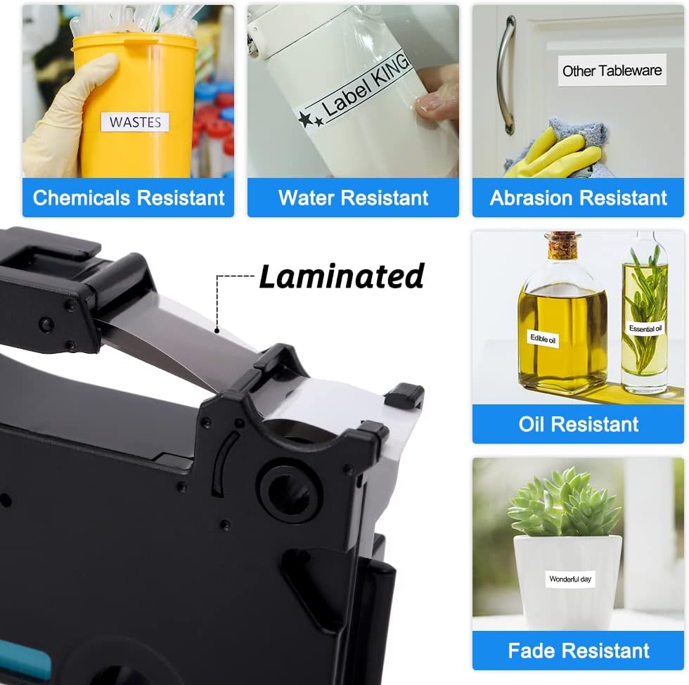 Label KINGDOM TZe-221 TZ Tape 9mm 0.35 Laminated White Replacement for Brother TZe221 9mm Label Tape Black on White 3/8 Inch Compatible with Brother P Touch PT-D210 PT-D220 PT-H110 PT-D400, 4-Pack