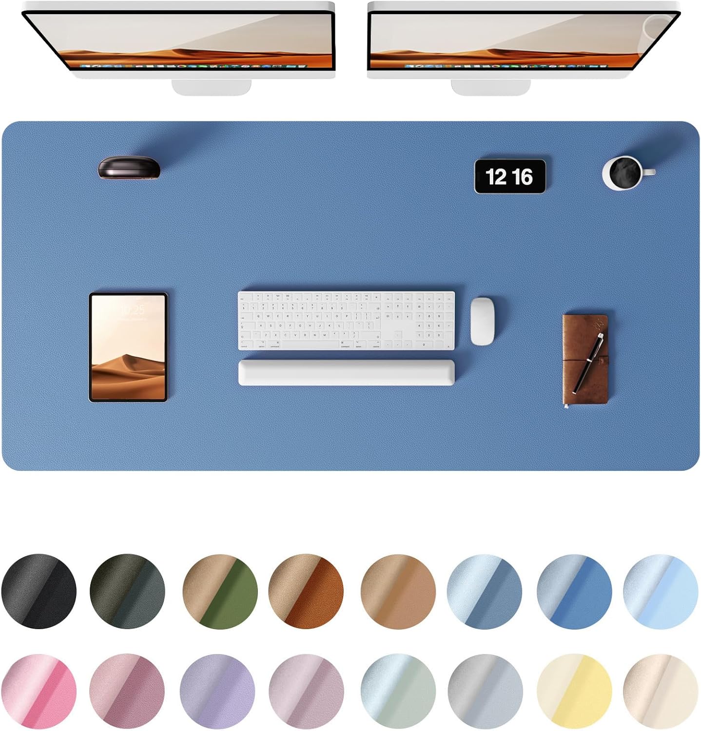 - DESK PROTECTOR: Durable PU Leather material adapted, which can protect your desk from scratches, stains, spills, heat and scuffs. Multi-color provided, change your mode by change the working atmosphere. Surface can be used as a large mouse pad, comfortable resting surface for your hands while writing, typing, and using the mouse. A must have office or study supplies.