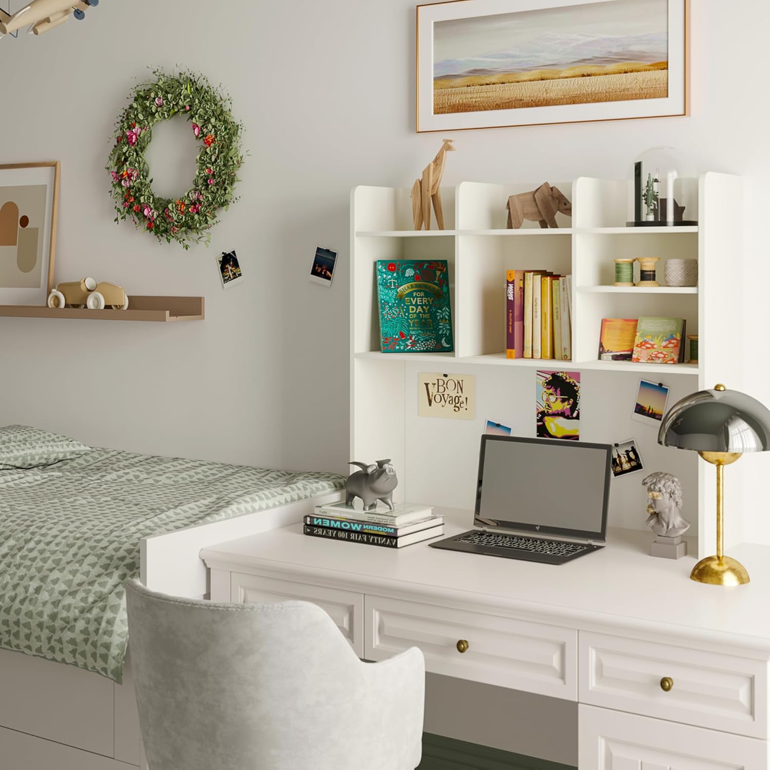 - γClassic Appearance DesignγThe desktop bookshelf combines sturdy MDF board with smooth off-white paint, integrating classic and simple design with stability and practicality