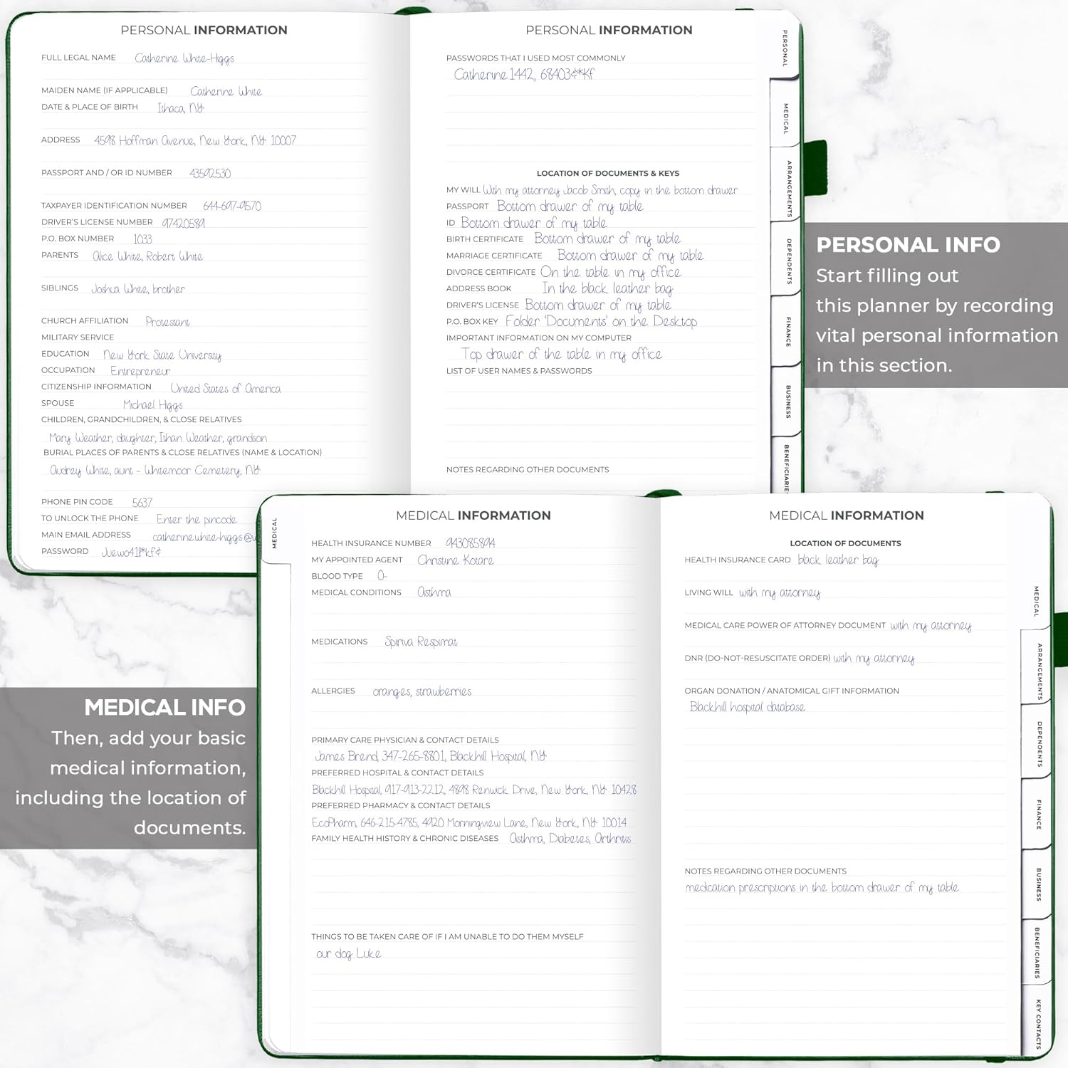 - PREPARE DETAILED INSTRUCTIONS TO GUIDE YOUR LOVED ONES: This guided final arrangements planner is an easy-to-use tool for organizing all essential personal information, from medical data to passwords and financial records.