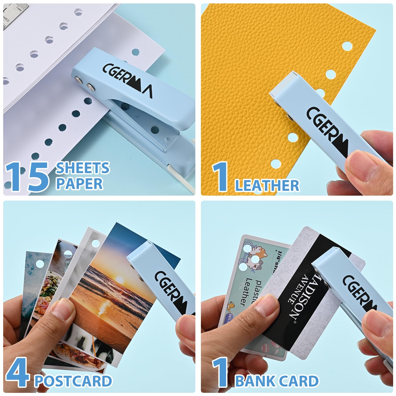 Single Hole Puncher, 1/4" Hole, 50% Labor Savings, Heavy Duty Metal Punch, 15 Sheet Capacity, for ID Cards, Chipboard, Art Project, Crafts Easy Punching, Blue