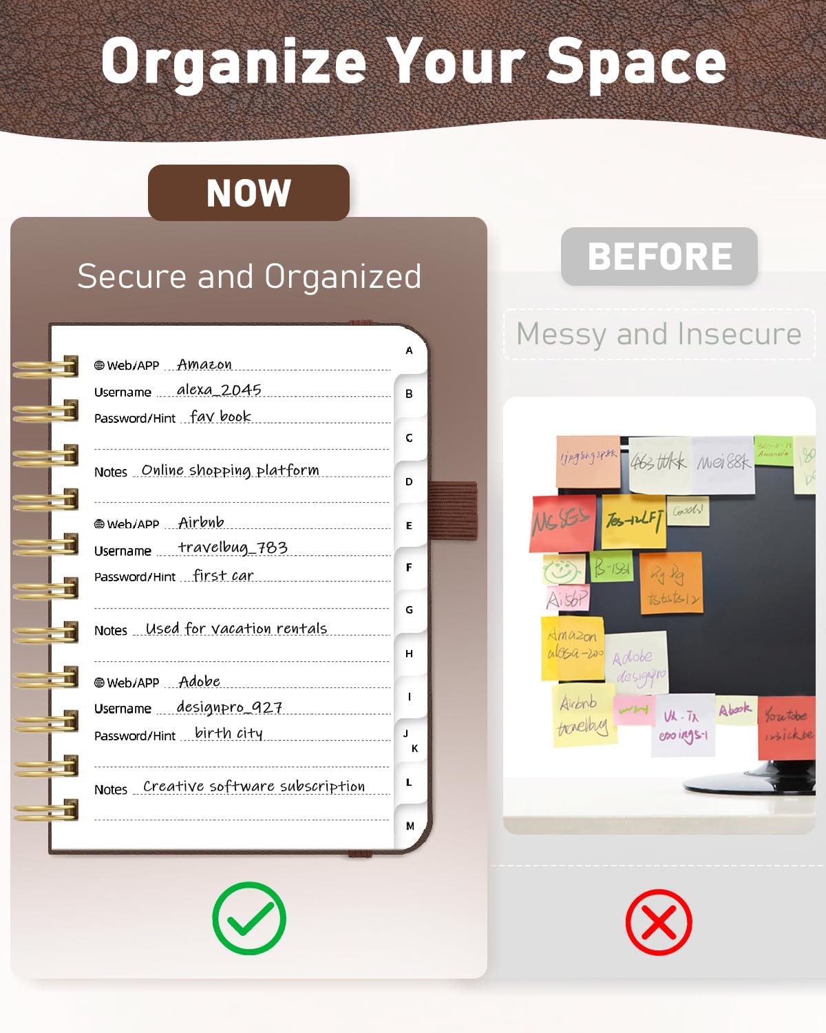 - Enduring Vegan Leather: Exquisite Texture; 100 GSM Paper Resists Ink Bleed-through, Ensuring Long-lasting Value; Elevate Your Password Management