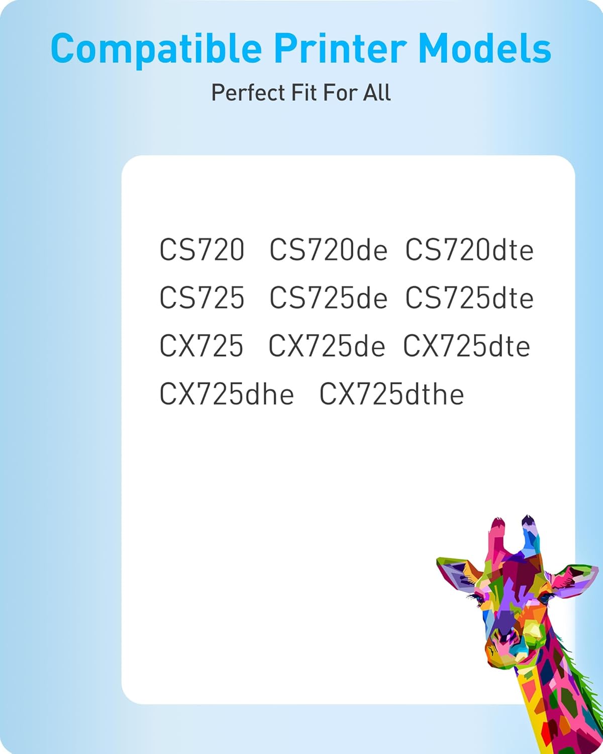 - Compatible Printers: for Lexmark CS720, CS720de, CS720dte, CS725, CS725de, CS725dte, CX725, CX725de, CX725dte, CX725dhe, CX725dthe printer