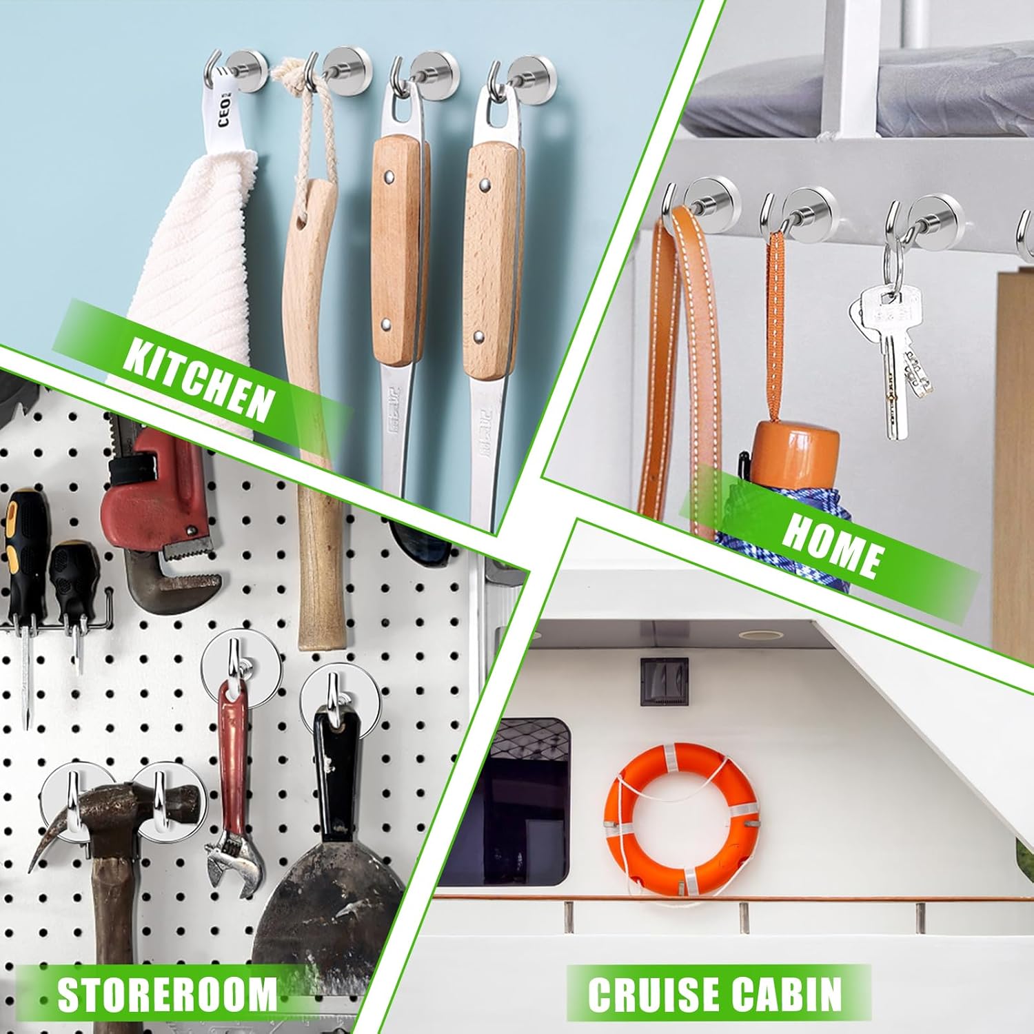 - ✔ 【VERSATILE USE】- Strong magnetic kitchen hooks are widely used, neodymium magnetic hook for fridge is endowed with strong ability to fix various items in any place with iron or steel. Magnets with hook is a magnetic key holder for wall. Our cruise ship magnetic hooks provide storage solutions, including bathroom, kitchen, tool room. Small metal hooks are also very suitable for grills, storage cabinets.