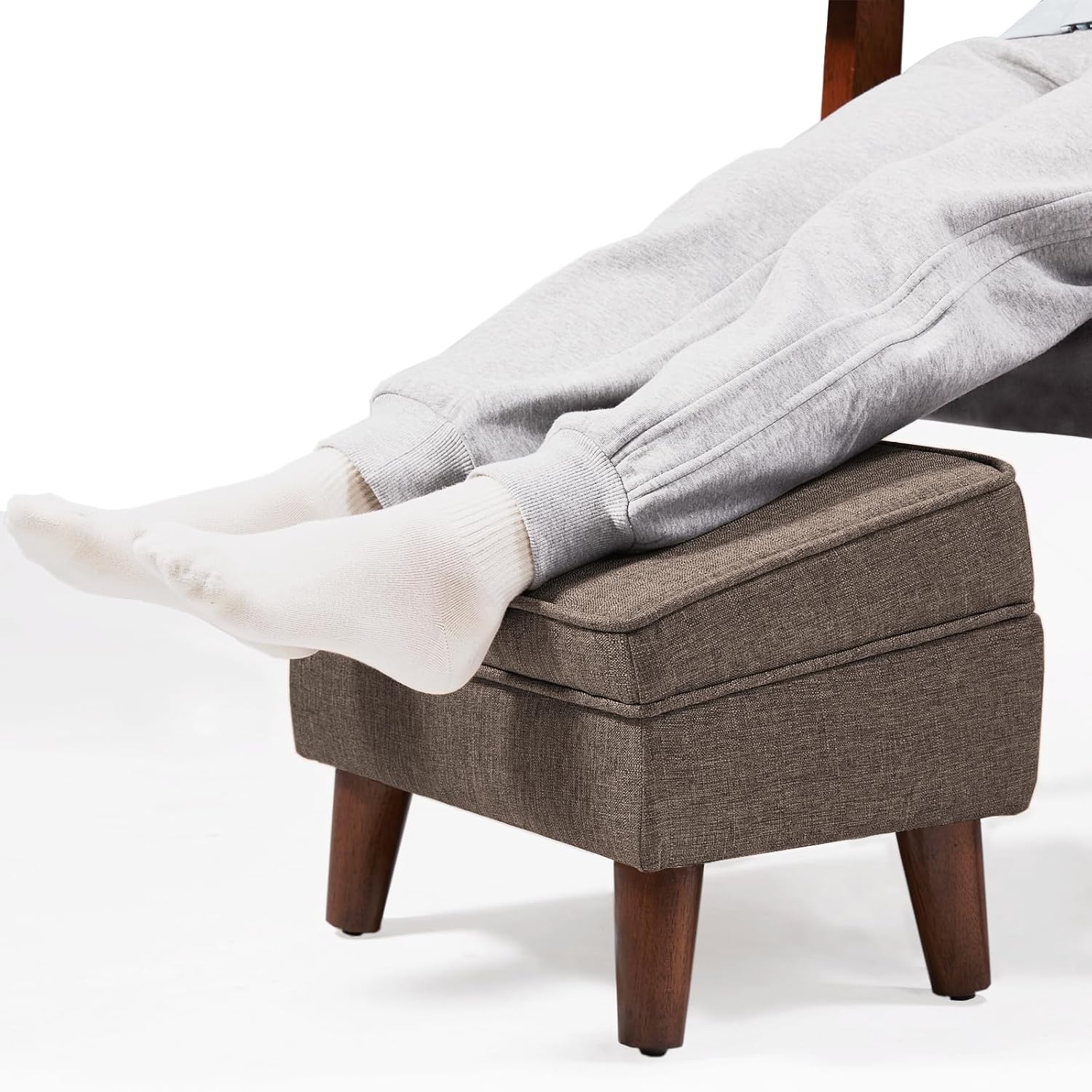 Small Footstool Ottoman with Adjustable Lid, Modern Storage Ottoman, Foot Rest for Couch, Foot Stool with Sturdy Wood Legs for Living Room, Bedroom, Enterway, Brown