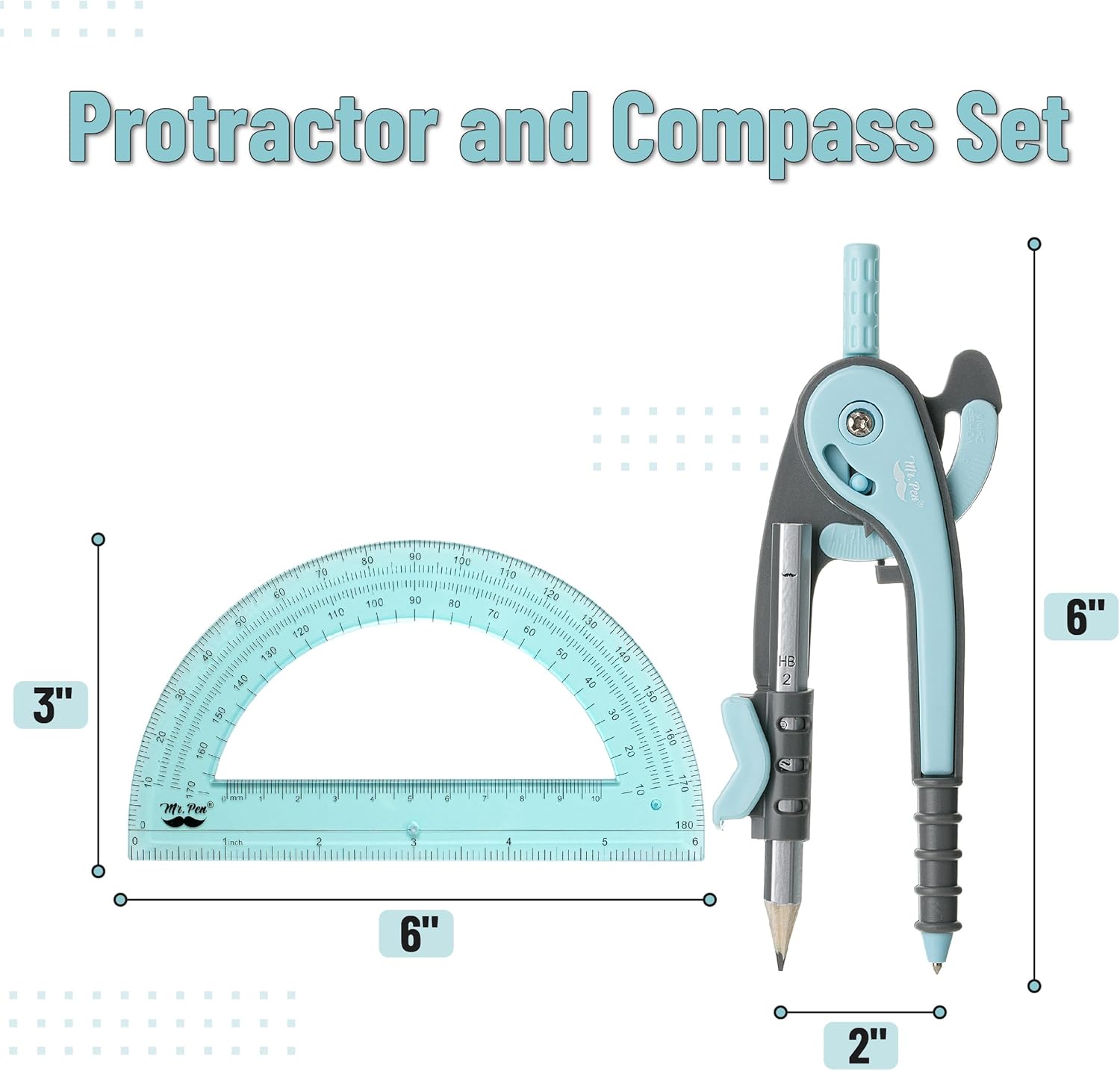 Mr. Pen- Compass and Protractor Set, Sky Blue, Compass Geometry Tool, Protractor and Compass Set, Compass Drawing Tool, Drawing Compass, Geometry Compass, Back to School Supplies