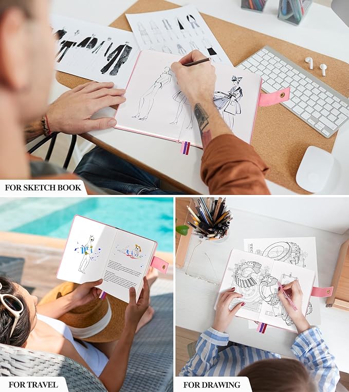 - 【180°LAY FLAT DESIGN】This drawing journal comes with 3 colored ribbon bookmarks, so you can mark your favorite pages with ease. The 180° lay flat design enables you to work on your drawings or writing without any distractions of bent pages. The unlined notebook ensures you have the freedom to sketch and write without any constraints.