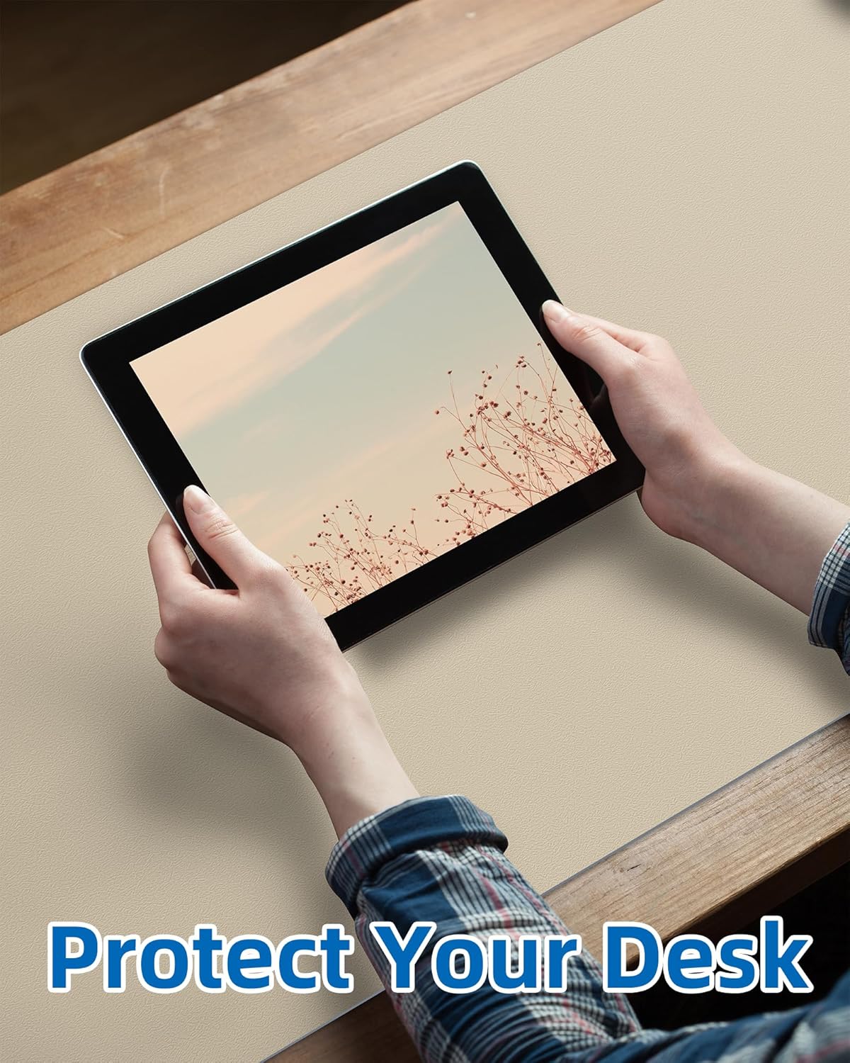 AFIING Leather Desk Pad Protector, Mouse Pad, Office Desk Mat, Non-Slip PU Leather Desk Blotter, Large Desk Mat, Waterproof Keyboard Mat for Office/Home/Decor (Beige, 48" x 17")