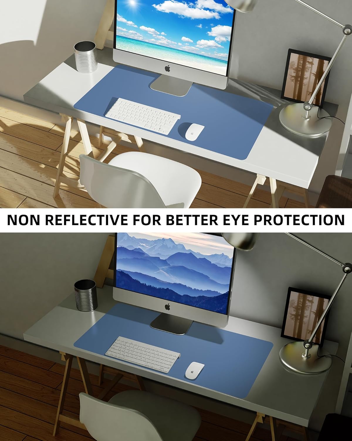 Leather Desk Pad Blotter,Mouse Pad,Office Desk Mat, Non-Slip PU Leather Desk mat,Large Desk mat,Waterproof Keyboard mat for Office/Home/Decor (Grey Blue,23.6" x 13")