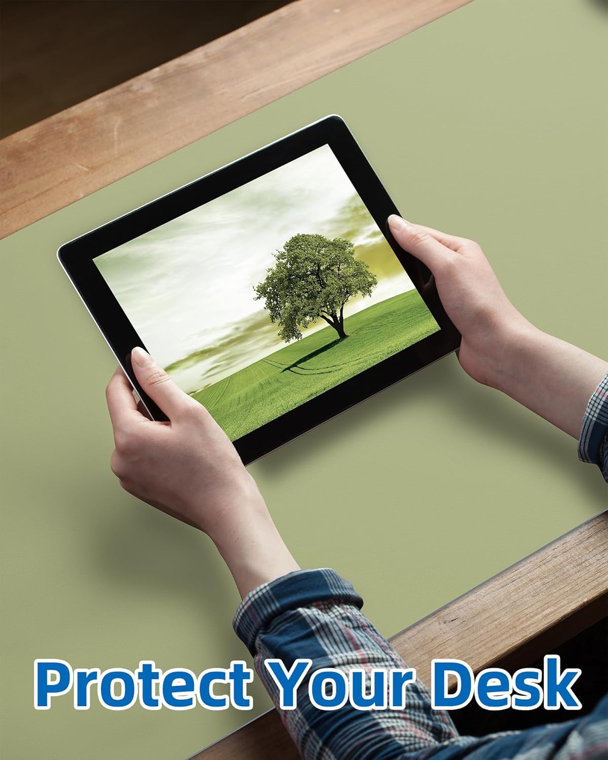 AFIING Leather Desk Pad Protector,Mouse Pad,Office Desk Mat, Non-Slip PU Leather Desk Blotter,Large Desk mat,Waterproof Keyboard mat for Office/Home/Decor (Olive Green,35"" x 17"")