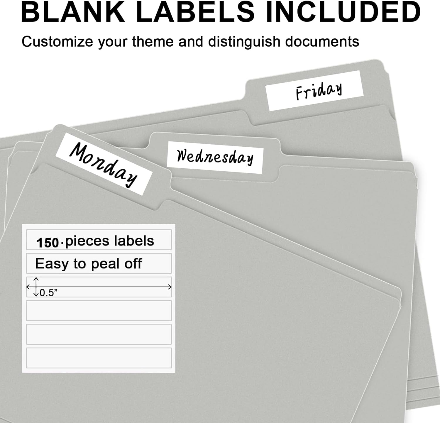- PACKAGE INCLUDED: This bulk pack includes 150 letter size file folders (50 of each position) and 150 blank labels, idea for any home, office, or school project, providing you with plenty of storage space for all of your important documents
