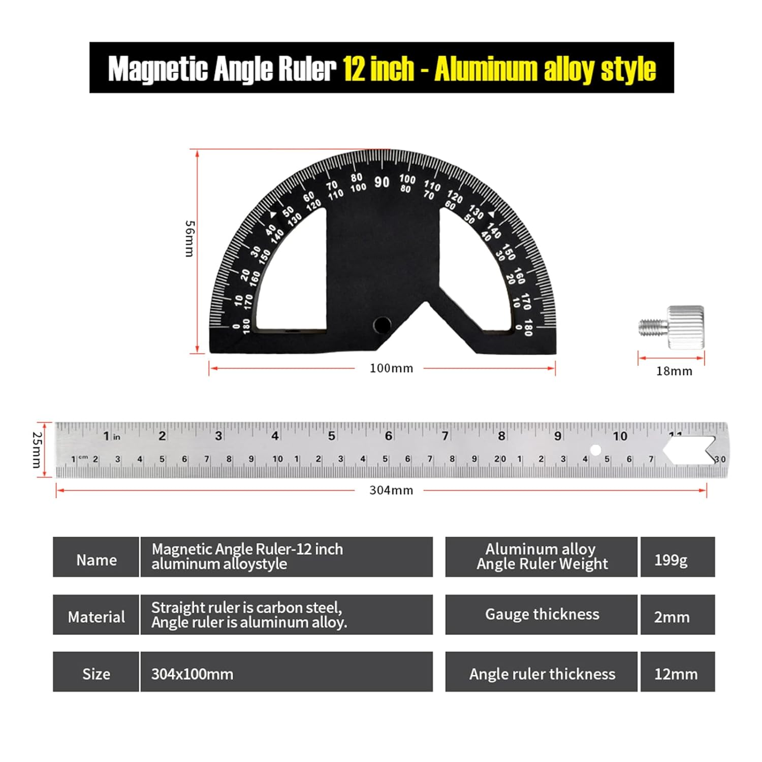Protractors Angle Ruler Angle Finder Ruler Machinist Protractor Angle Measuring Tool 12-Inch Woodworking Ruler for Woodworking/Carpenter/Construction/Measurement/Hobbyists