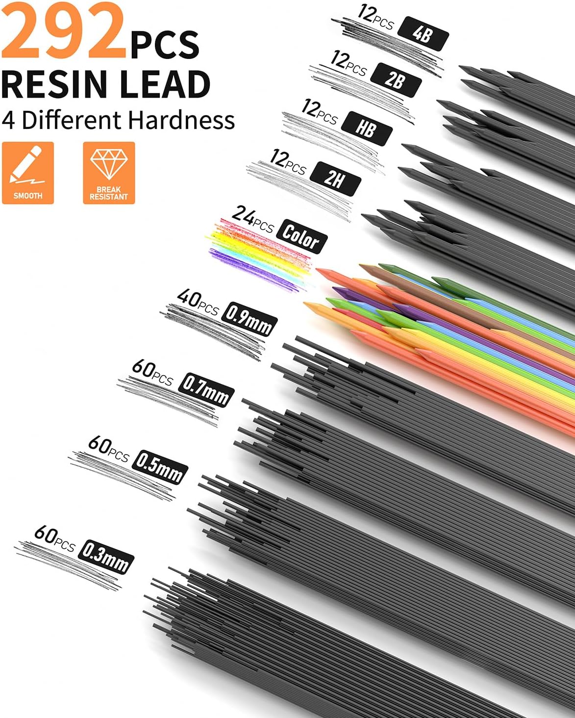 - 24 PCS Colored Lead: Offers a diverse range of colors for drawing and coloring. Perfect for creative projects, it encourages experimentation with different color combinations and effects.