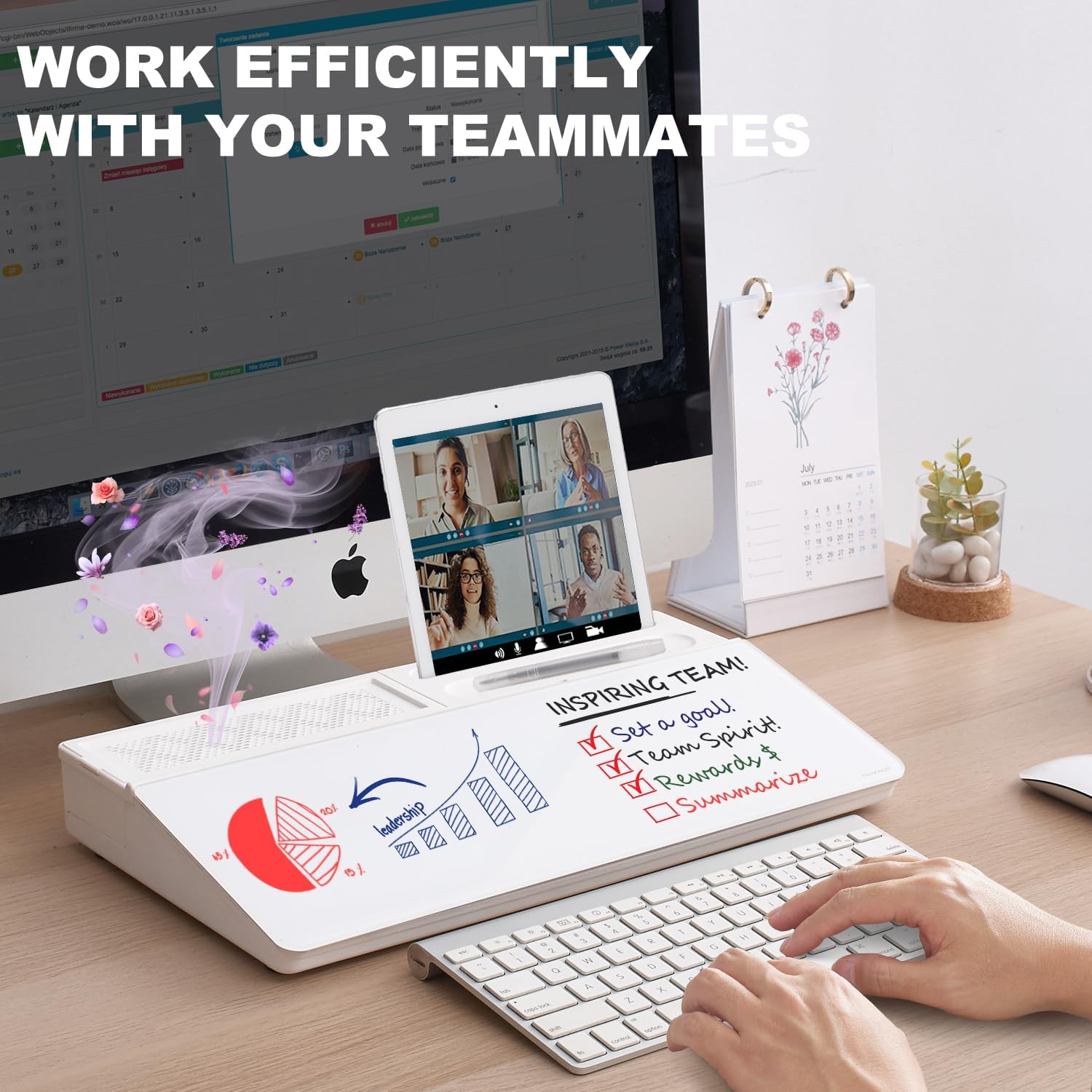 Small Glass Desktop Whiteboard Dry-Erase-Board - Computer Keyboard Stand White Board Surface Pad with Aromatherapy, Desk Organizers with Accessories for Office, Home, School Supplies