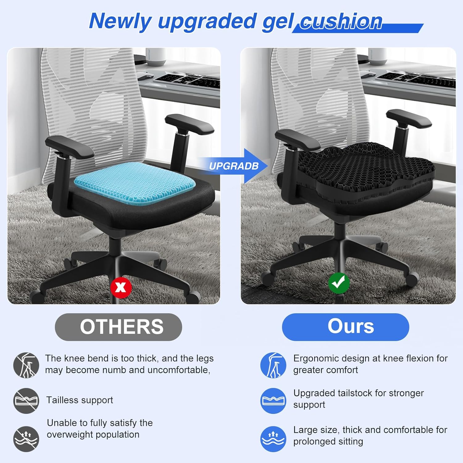 - Multi-Use Gel Seat Cushion: Suitable for office chairs, wheelchairs, cars, and desks. Ideal for yoga, pregnancy, and long-distance travel. The black cover is removable and washable for easy cleaning
