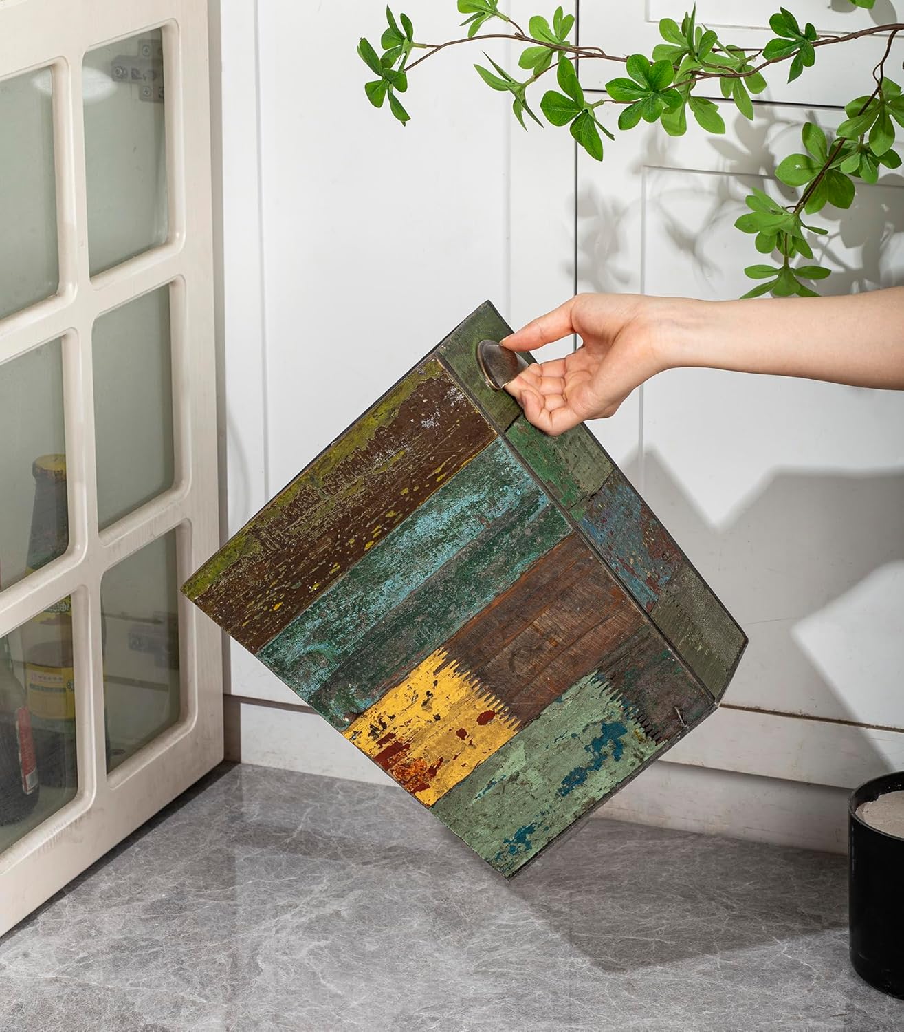 - CHARMING BOHO TOUCH βWith a stunning distressed look and a variety of textures and colors, our wooden waste can creates a vintage boho charm, it is a unique and beautiful scenery wherever you place it, you will certain to get plenty of compliments.