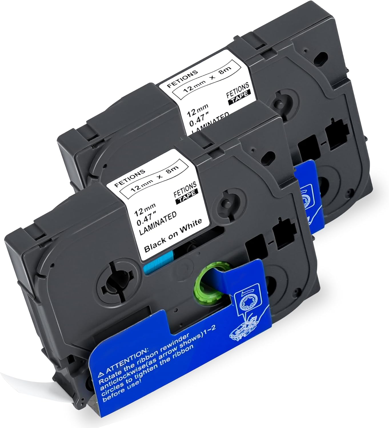 Label Maker Tape TZe-231 Replacement for Brother P Touch PT-D210 PT-D220 PT-H110 PT-D600 D400 by FETIONS, Compatible with TZe TZ 12mm X 8m Laminated Waterproof Label Tape, 2 Pack
