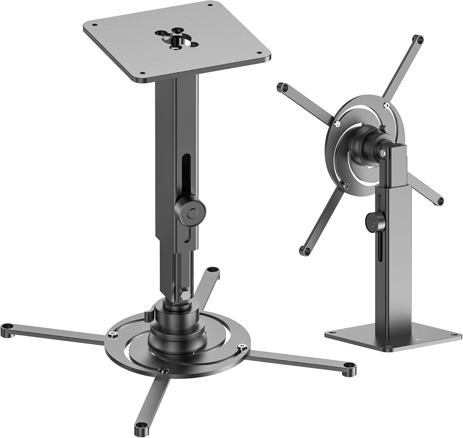 Projector Mount Wall with Multi-Hole Design, Adjustable Universal Projector Ceiling Mount for Home Theater, Office, Classroom, Heavy Duty Aluminum Projector Stand, Load 55 lbs - Black