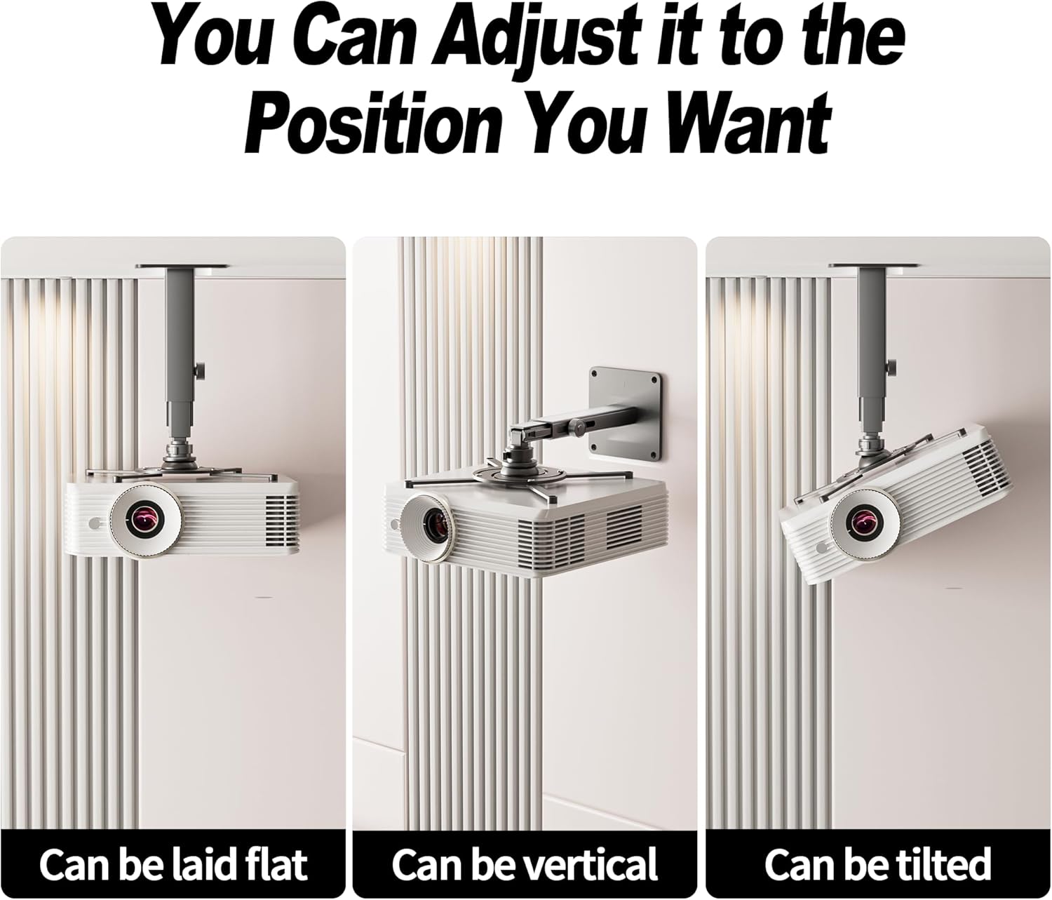 - 【Exclusive patent】Perfectisan independently developed and designed a patented quick locking device, a unique "anti-slip" adjustment system that will not shift after letting go, accurately adjust the projection position, easily fix the angle you want and lock it in any position! The angle of the projection bracket is adjustable, 90° tilt, 360° rotation, and 25° pitch at any angle, making it easy to use.
