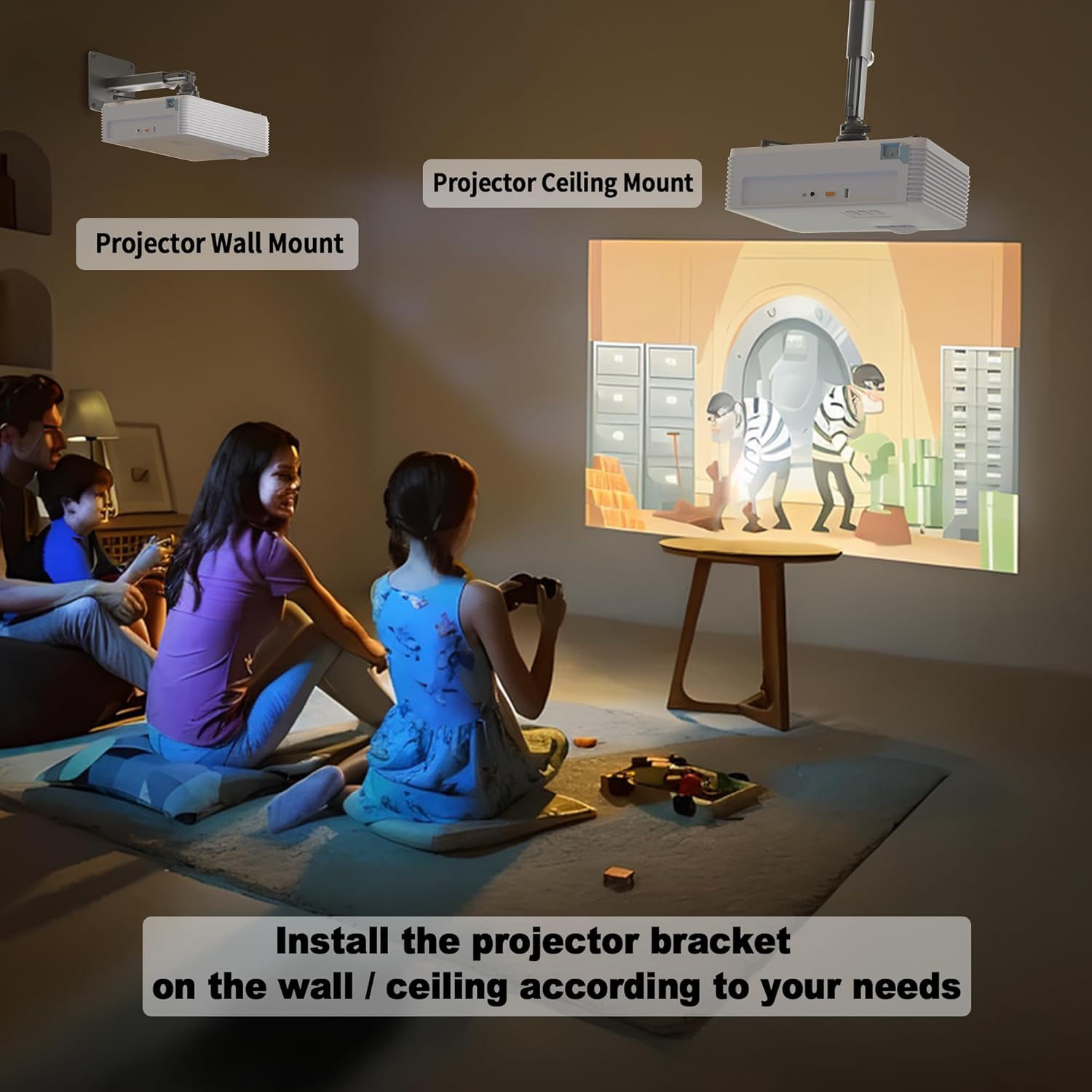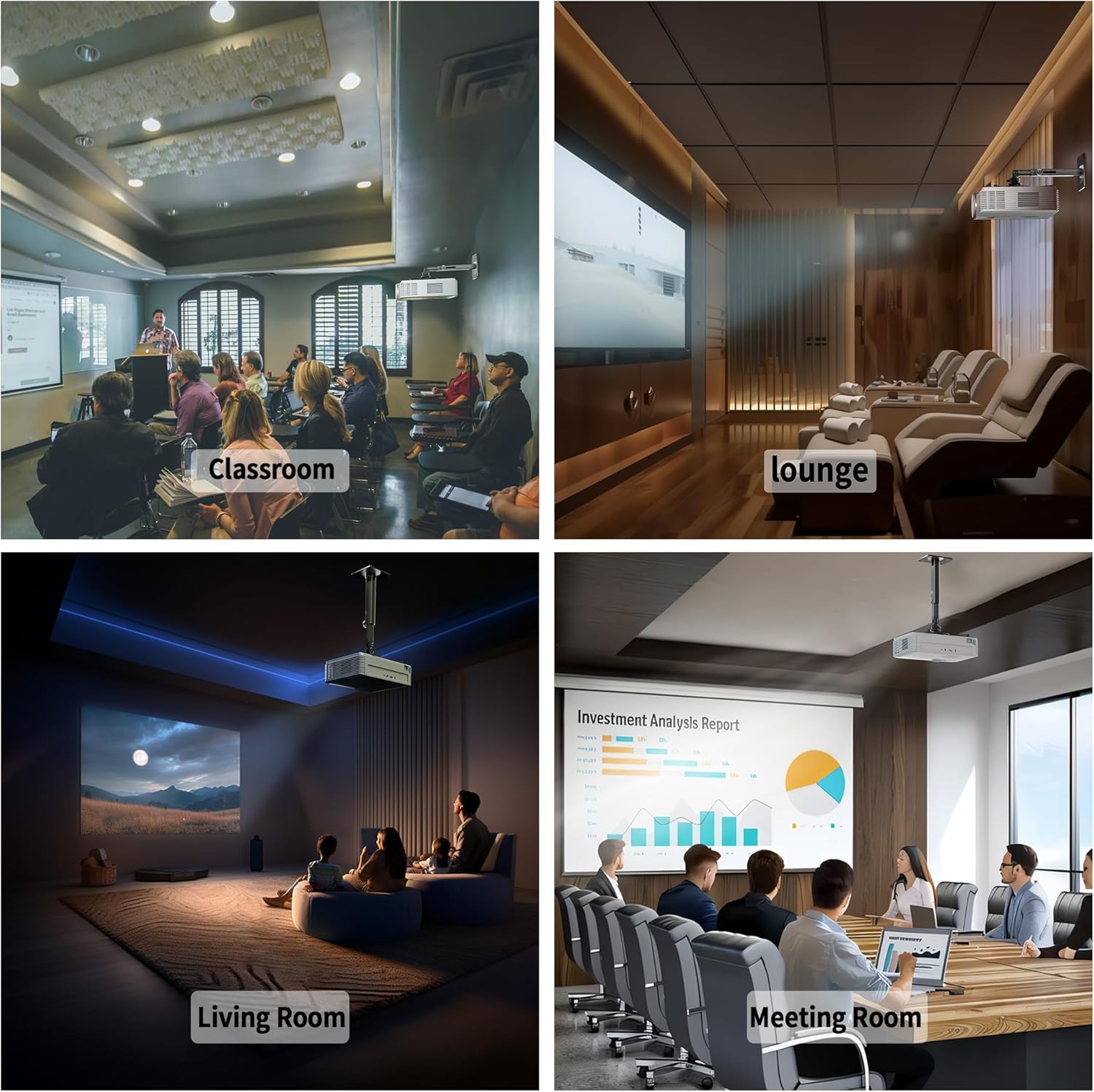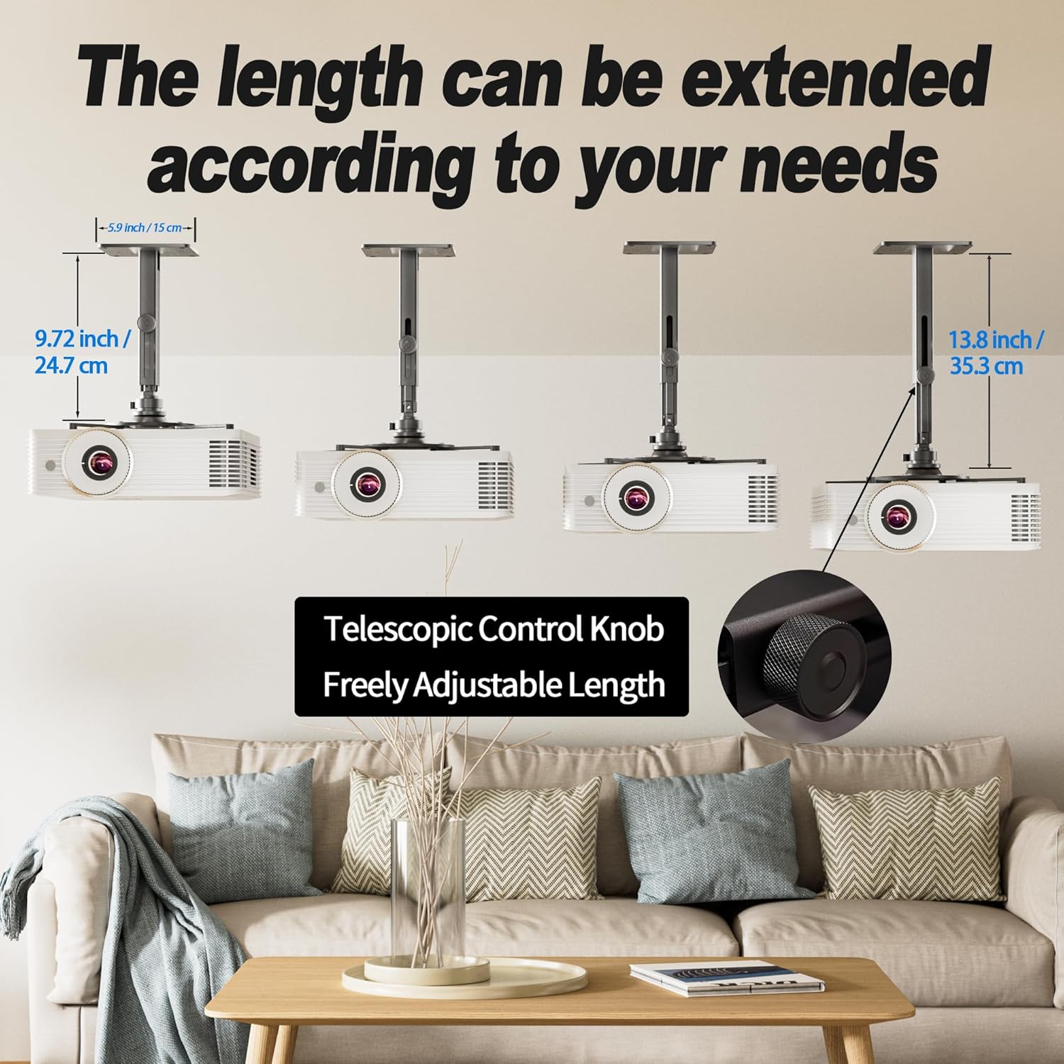- 【Easy to Install】The projector stand has a maximum length of 13.8 inch / 35.3 cm and a retractable height of 9.72-13.8 inch. It provides flexible installation, you can choose ceiling or wall installation according to your preferences and space requirements, just drill 4 holes on the load-bearing wall or ceiling to complete the installation. Perfect for use in classrooms, conference rooms, hotels, home theaters, or anywhere a projector needs to be installed!