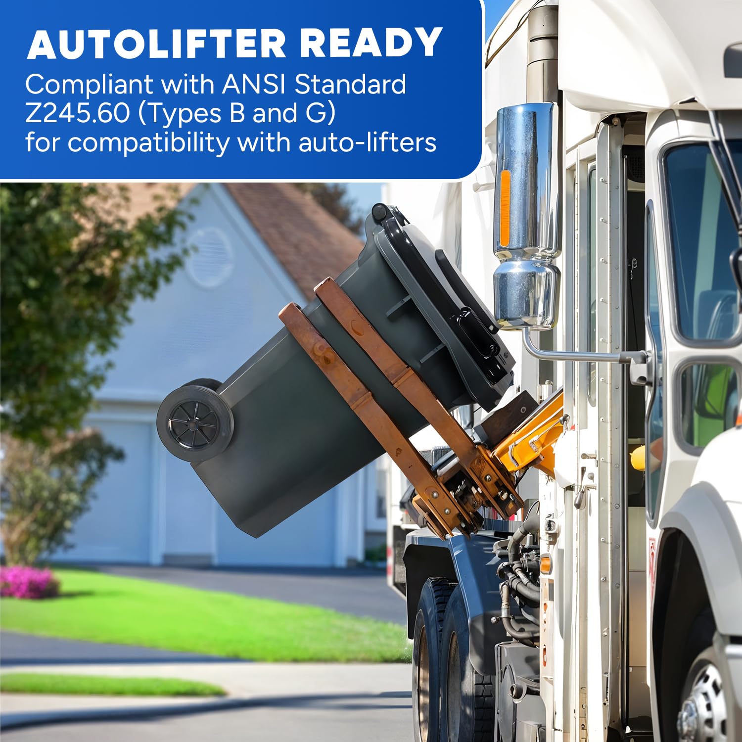 - Durable HDPE Construction: Made from high-density plastic, this plastic trash can with lid on wheels is built to withstand heavy use and harsh outdoor conditions for long-lasting performance.