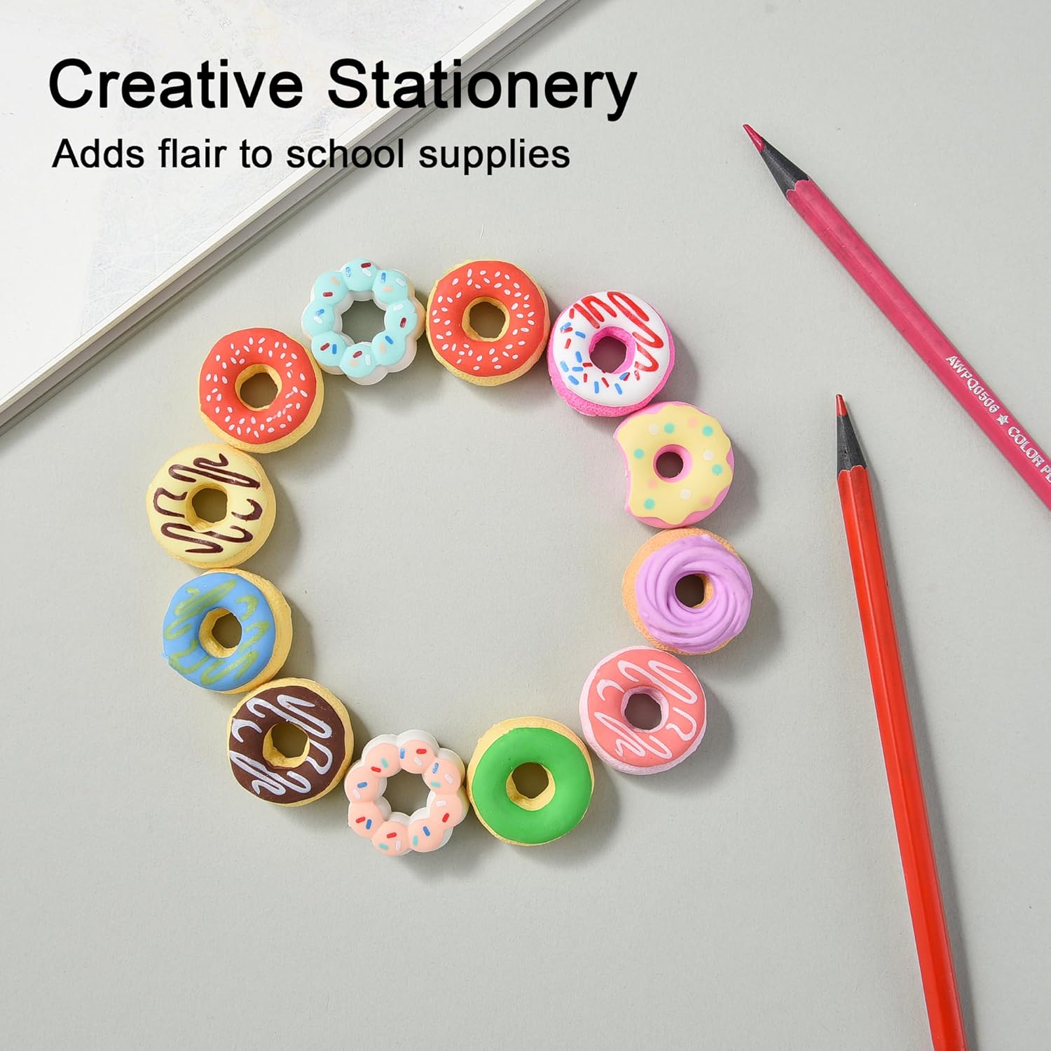 - Adorable Donut Erasers: Treat your kids to these charming donut-shaped erasers, adding a playful twist to their stationery collection