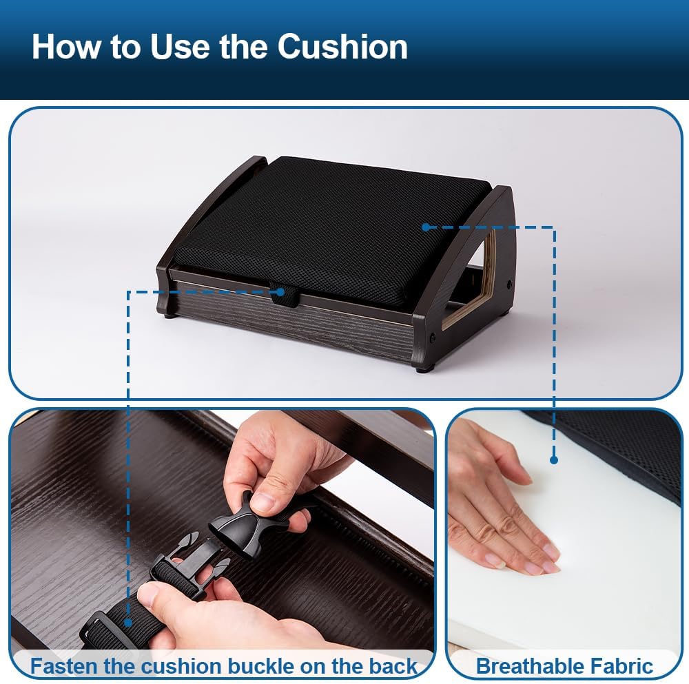 - Ergonomic Four Adjustable Angles: Experience optimal support when sitting or standing at the office with this ergonomic under desk footrest featuring four adjustable heights. The desk foot rest caters to your needs, helping to alleviate shoulder, back, and leg pain, reduce pressure on the spine and legs, improve sitting posture, and promote leg blood circulation.