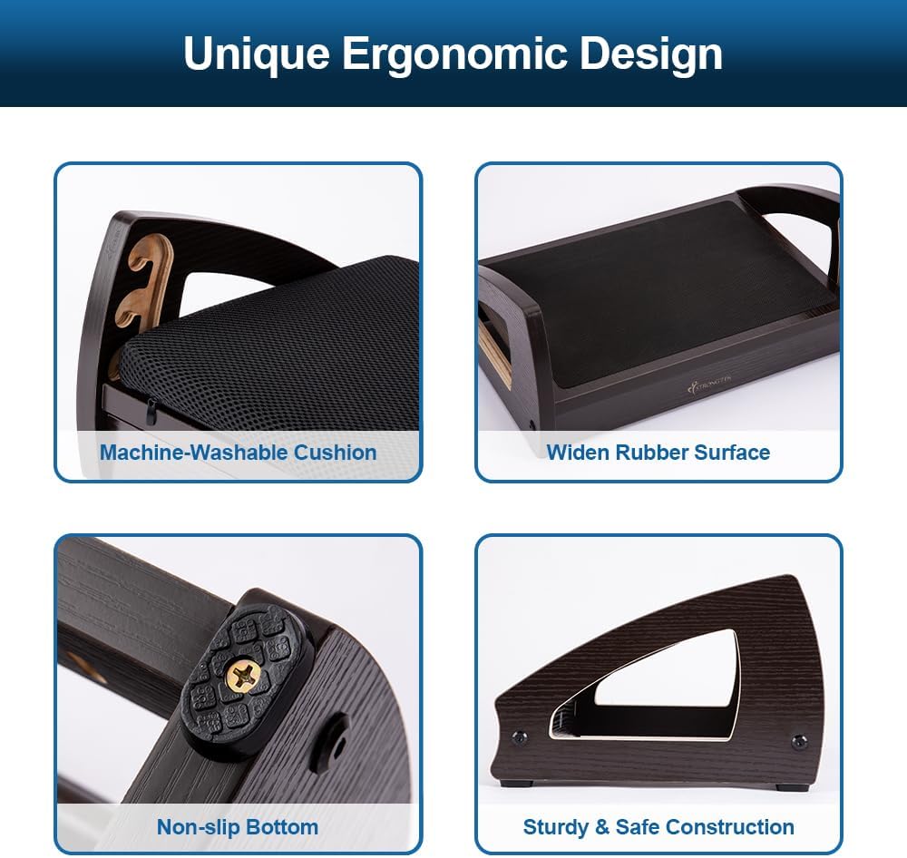 - Safe & Durable: Constructed from high-quality Lauan hardwood plywood sourced from plantation-grown timbers, this foot rest for under desk at work is sturdier and more durable than those made from ordinary plastic. Capable of supporting up to 400 lbs, each footrest comes with an anti-slip bottom to prevent slipping or sliding while rolling and tilting.