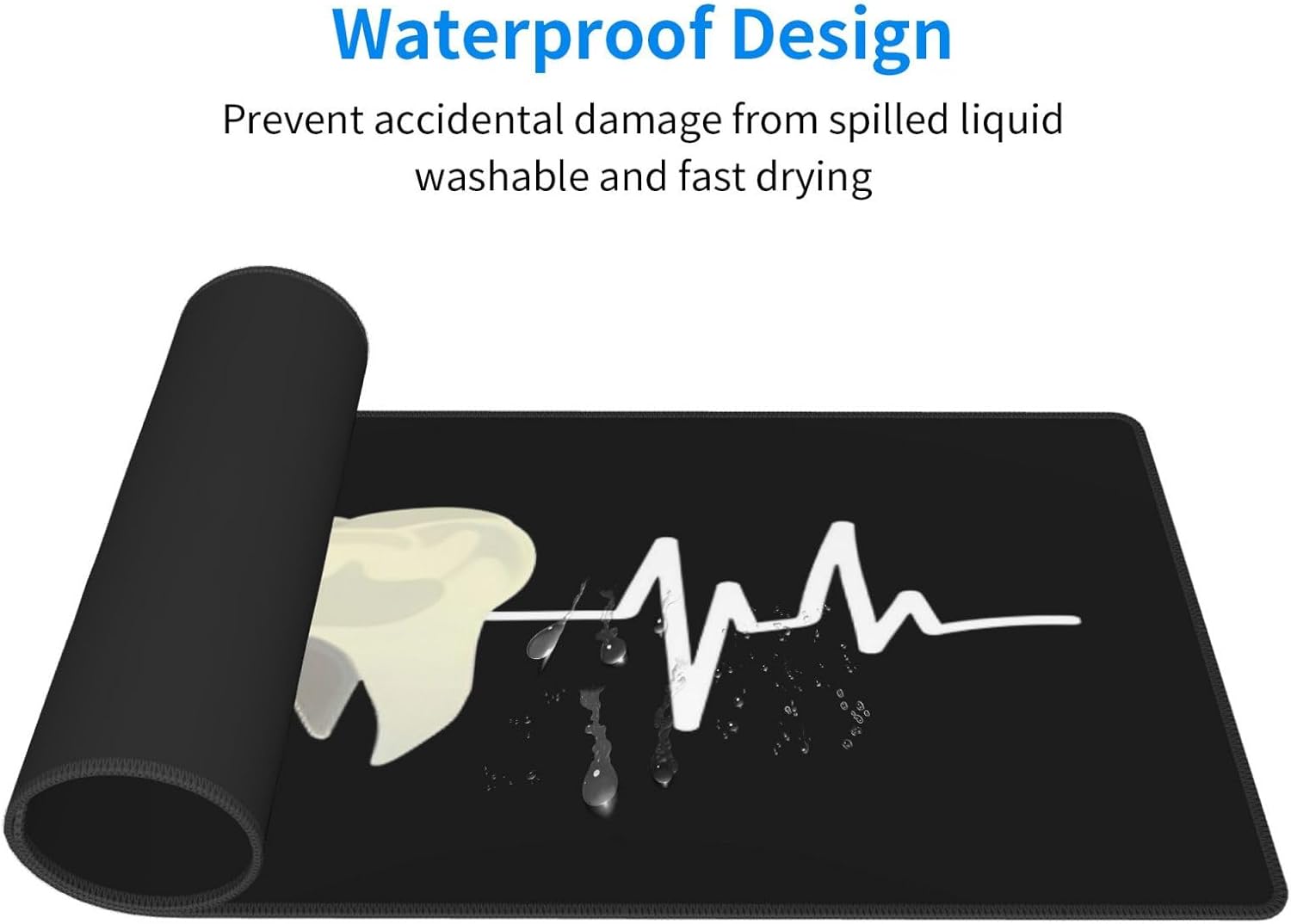 Tooth Dentist Mouse Pad, Heartbeat Dental Assistant Large Big Gaming Mouse Pad Desk Pad, Mousepad with Non-Slip Rubber Base, Extended XXL Mouse Mat for Computer Laptop Office Accessories