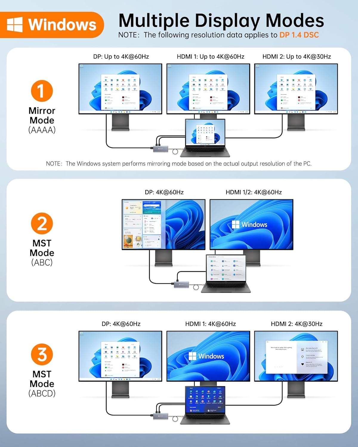 - πγTriple Display Made EasyγPerform multitasking work with MST(A-BCD) support. In Windows system, this USB-Hub allows you to display different content on triple 4K@30Hz monitors and easily manage complex projects with spreadsheets, documents and presentations across screens. πΊNote: macOS only supports mirroring or single extension (A-AAA or A-BBB), not MST multi-monitor support.