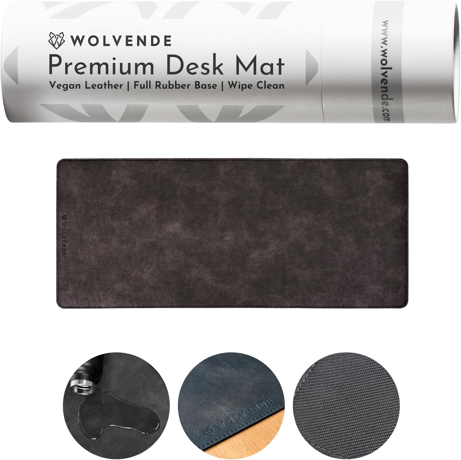 - PREMIUM HARD-WEARING VEGAN LEATHER - Constructed from hard-wearing, vegan-friendly leather, the Wolvende Premium Desk Mats are built to last those long work days and late gaming nights. Find the right size and coloured mat to complete your setup.
