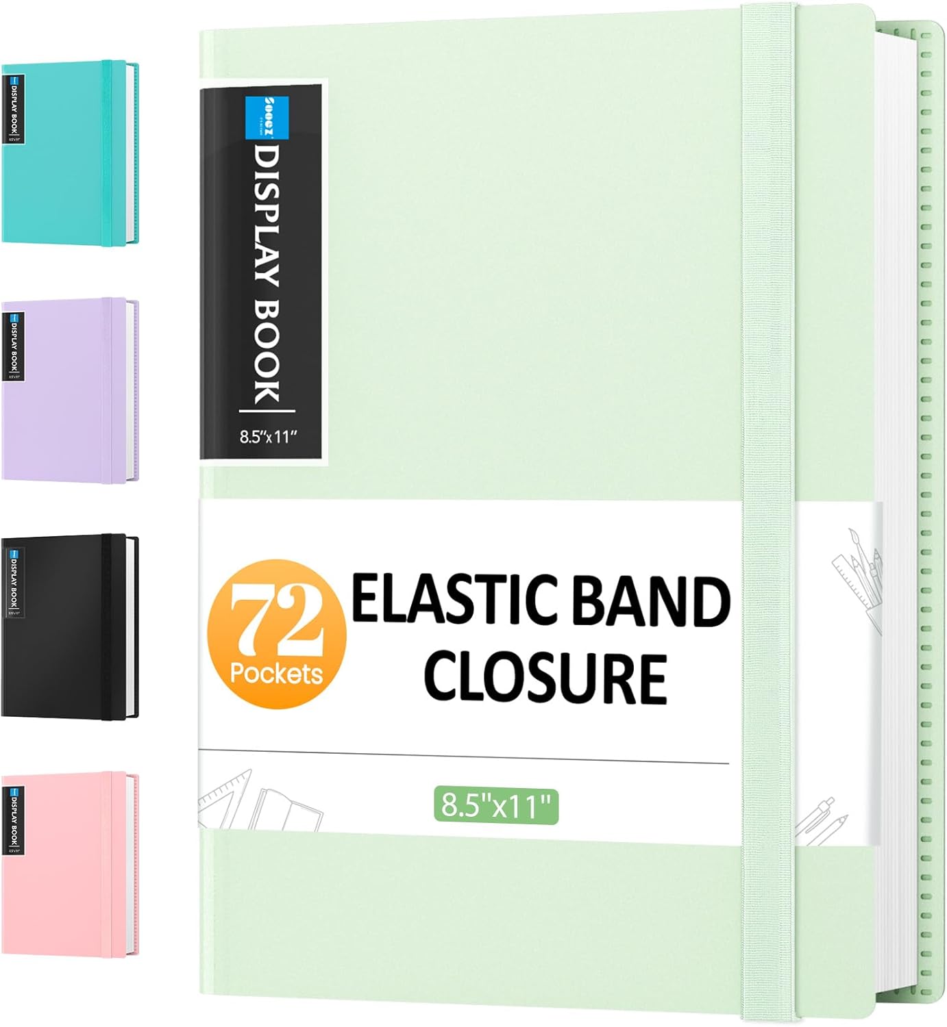 Sooez 72 Pocket Binder with Plastic Sleeves & Elastic Band, Large Capacity 8.5x11 Presentation Book Display 144 Pages, Art Portfolio Document Folder with Clear Sheet Protectors for Office School