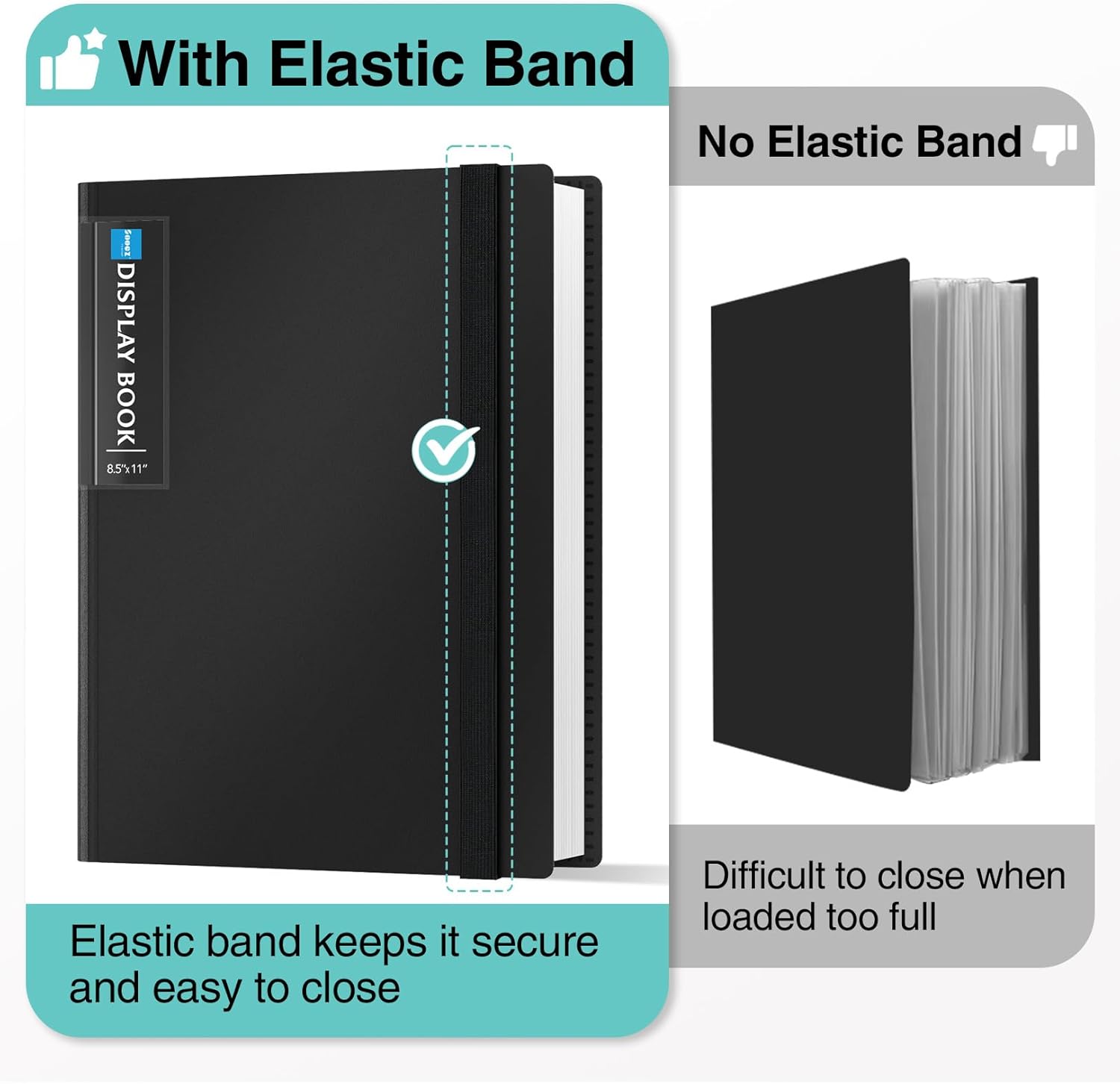 - Elastic Band for Secure ProtectionοΌFeatures a robust elastic band closure that keeps your portfolio folder closed and adds security to your documents. Enjoy peace of mind knowing your files are secure and wonβt spill out or get damaged.