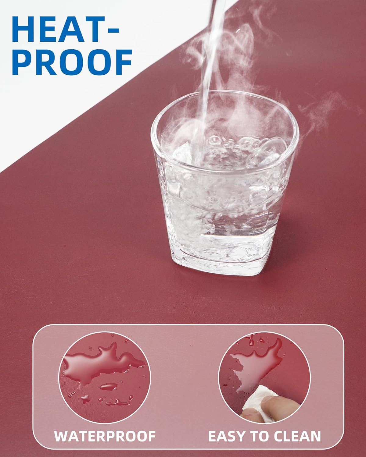 Leather Desk Pad Protector,Mouse Pad,Office Desk Mat, Non-Slip PU Leather Desk Blotter,Large Desk mat,Waterproof Keyboard mat for Office/Home/Decor (Burgundy Red,55" x 17")